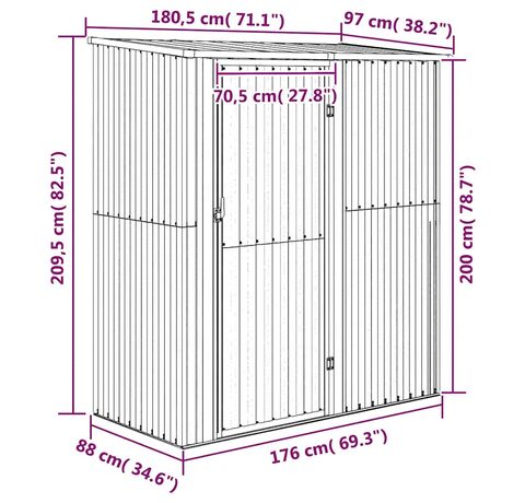 Cantitatea minima pentru "Magazie de grădină, gri, 180,5x97x209,5 cm, oțel galvanizat" este 1.