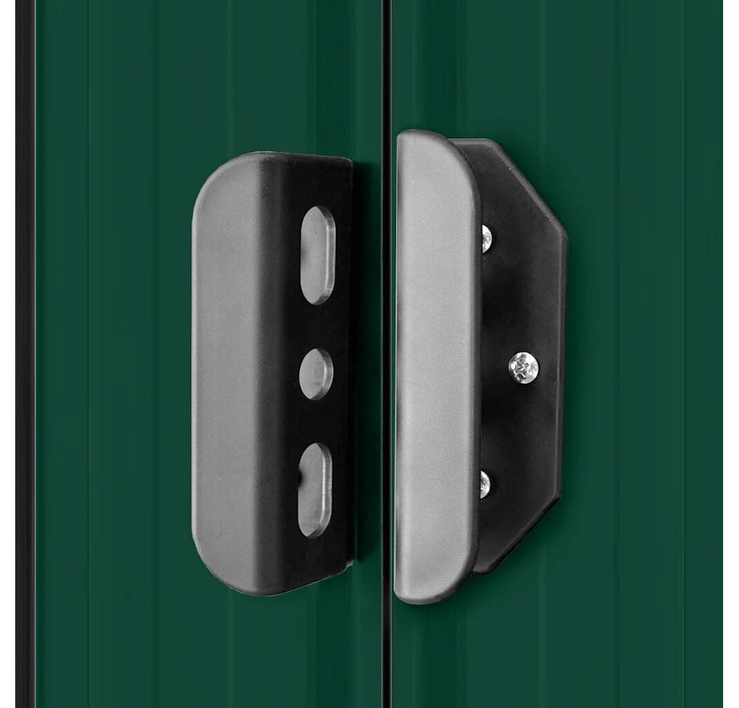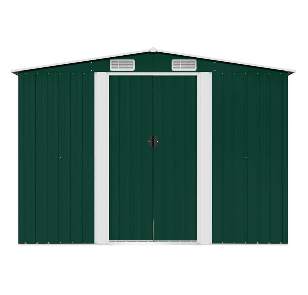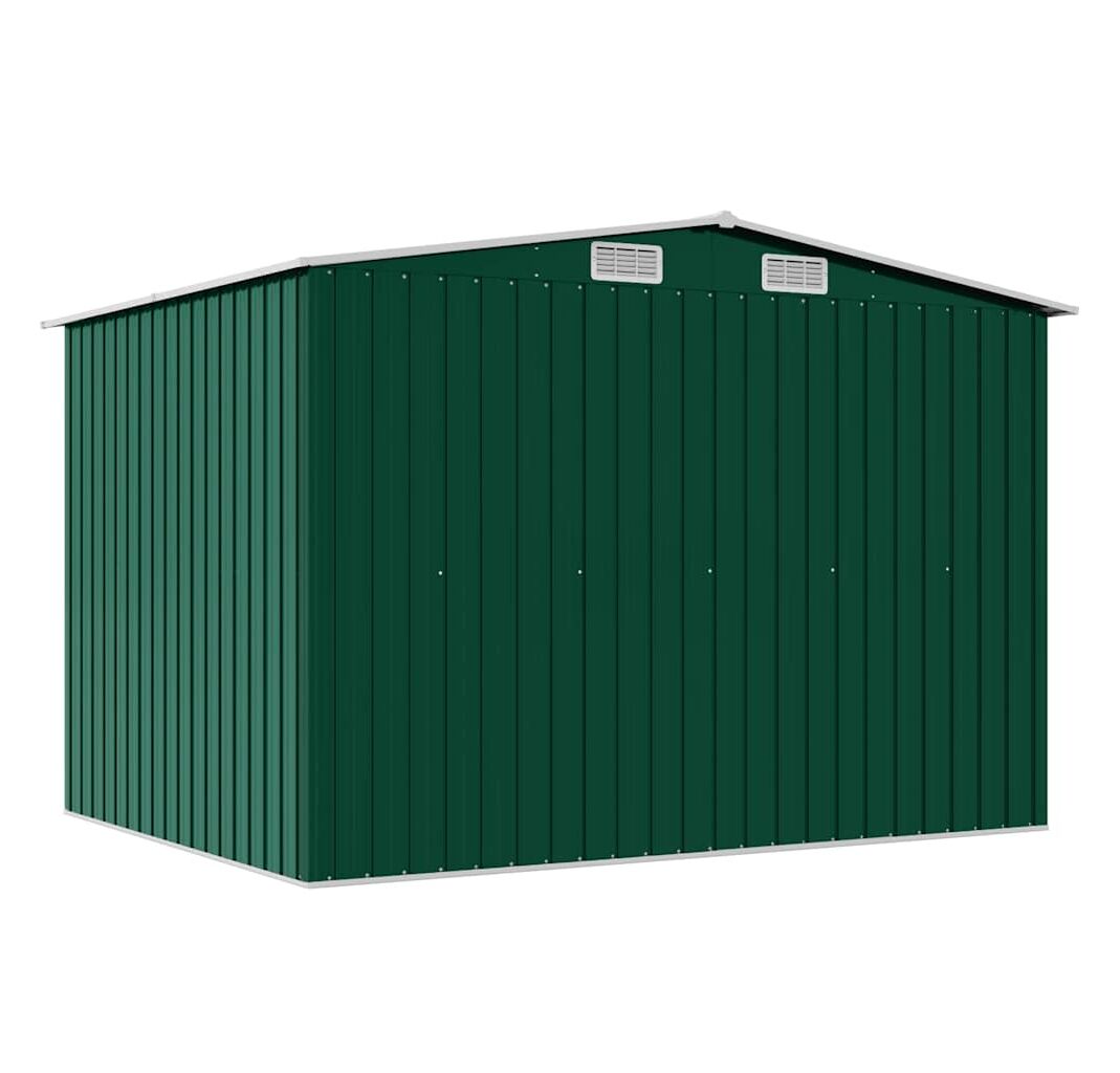 Acest spațiu de depozitare are 4 guri de aerisire, 2 în față și 2 în spate, asigurând o ventilație excelentă. Ușile duble glisante din față permit accesul și ieșirea din magazie cu ușurință.
