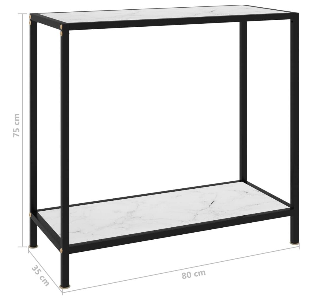 Masă consolă, alb, 80 x 35 x 75 cm, sticlă securizată