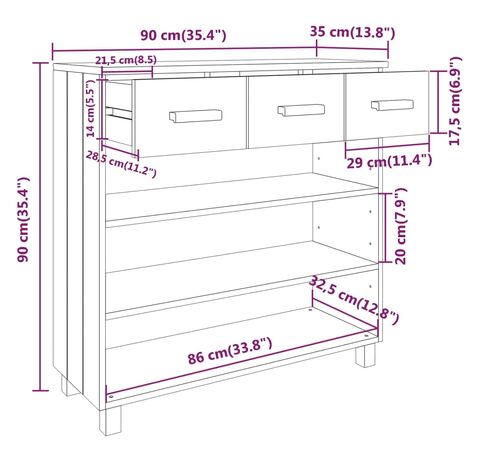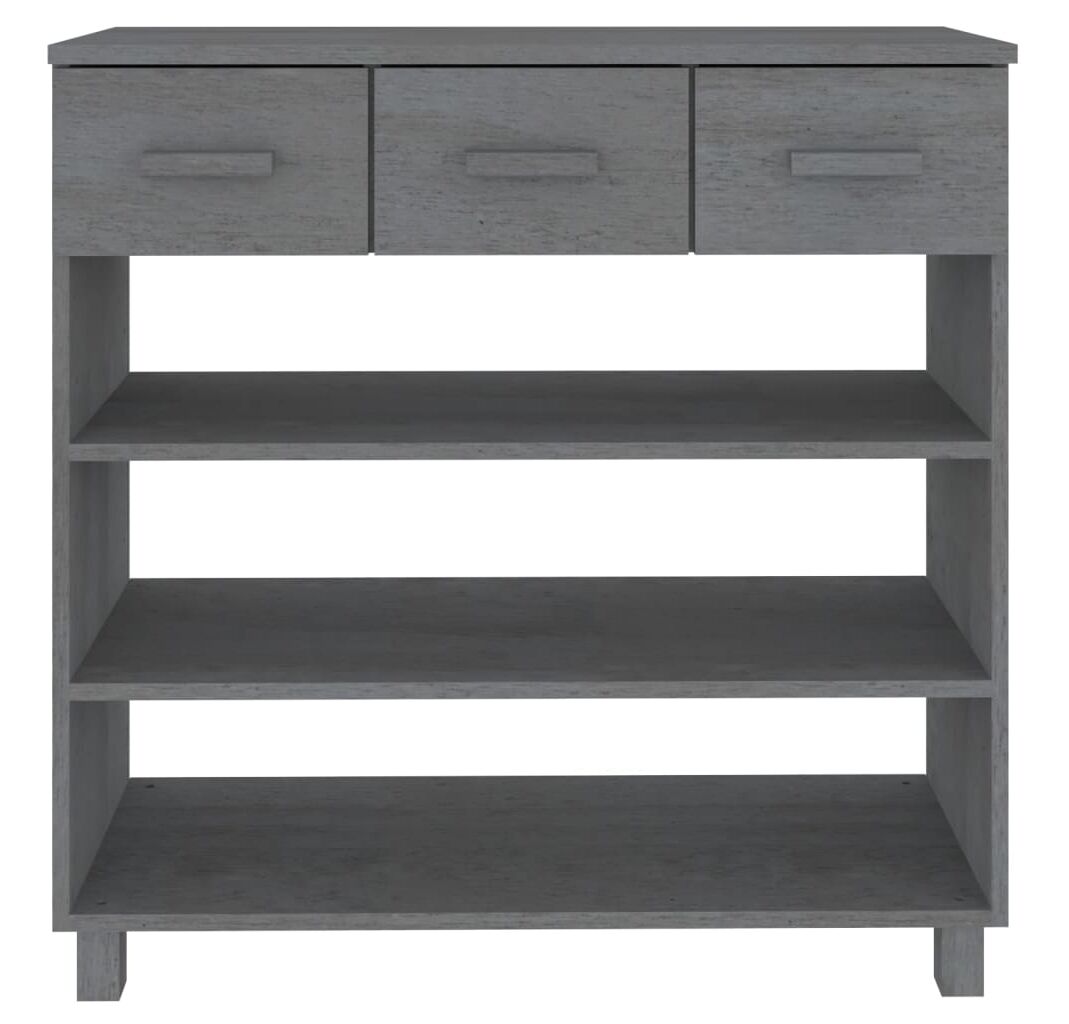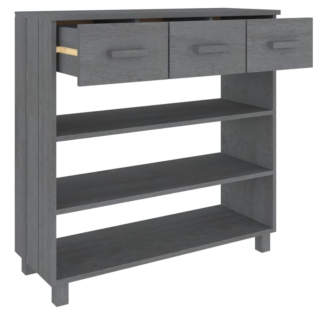 Această măsuţă de intrare este realizată din lemn masiv de pin, fiind stabilă și robustă. Masa de hol are 3 rafturi și 3 sertare cu glisare lină, oferind spațiu amplu de depozitare pentru a vă păstra diverse lucruri, bine organizate și la îndemână. În plus, blatul robust este perfect pentru a expune obiecte decorative, rame foto și plante în ghiveci.