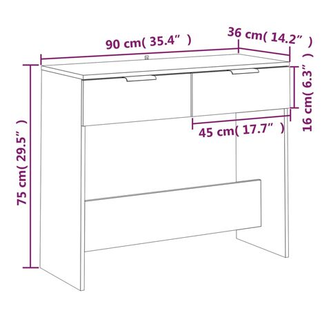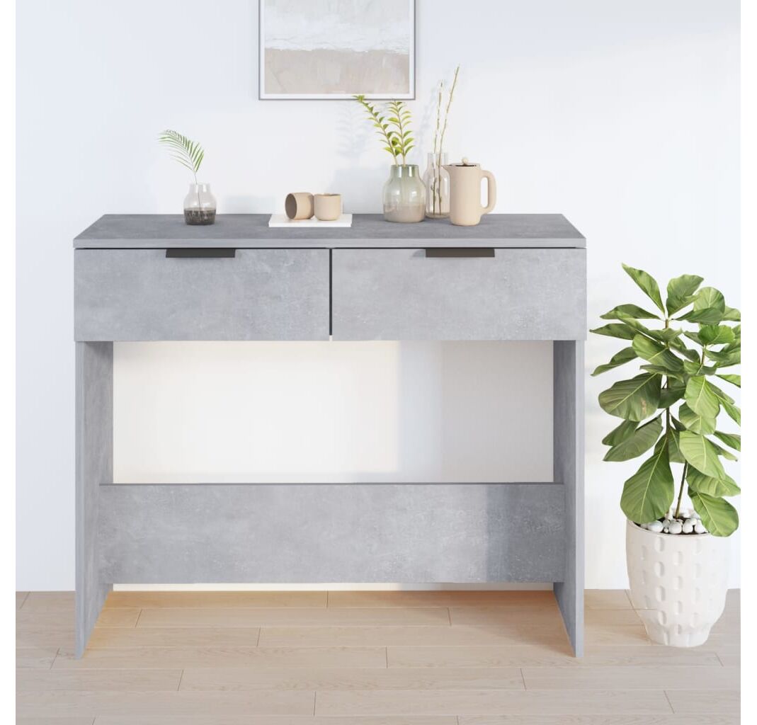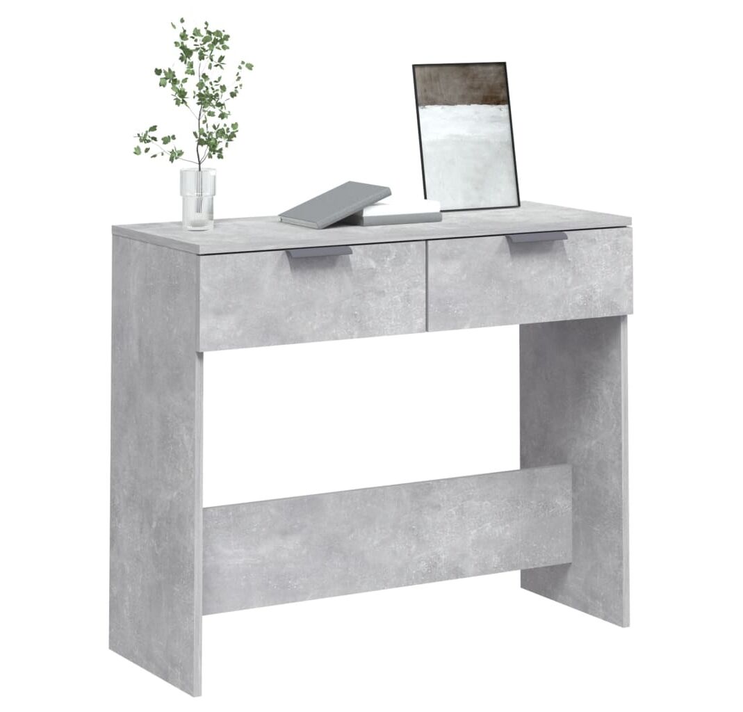 Măsuță consolă, gri beton, 90x36x75 cm, lemn prelucrat