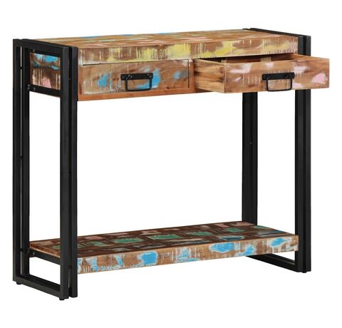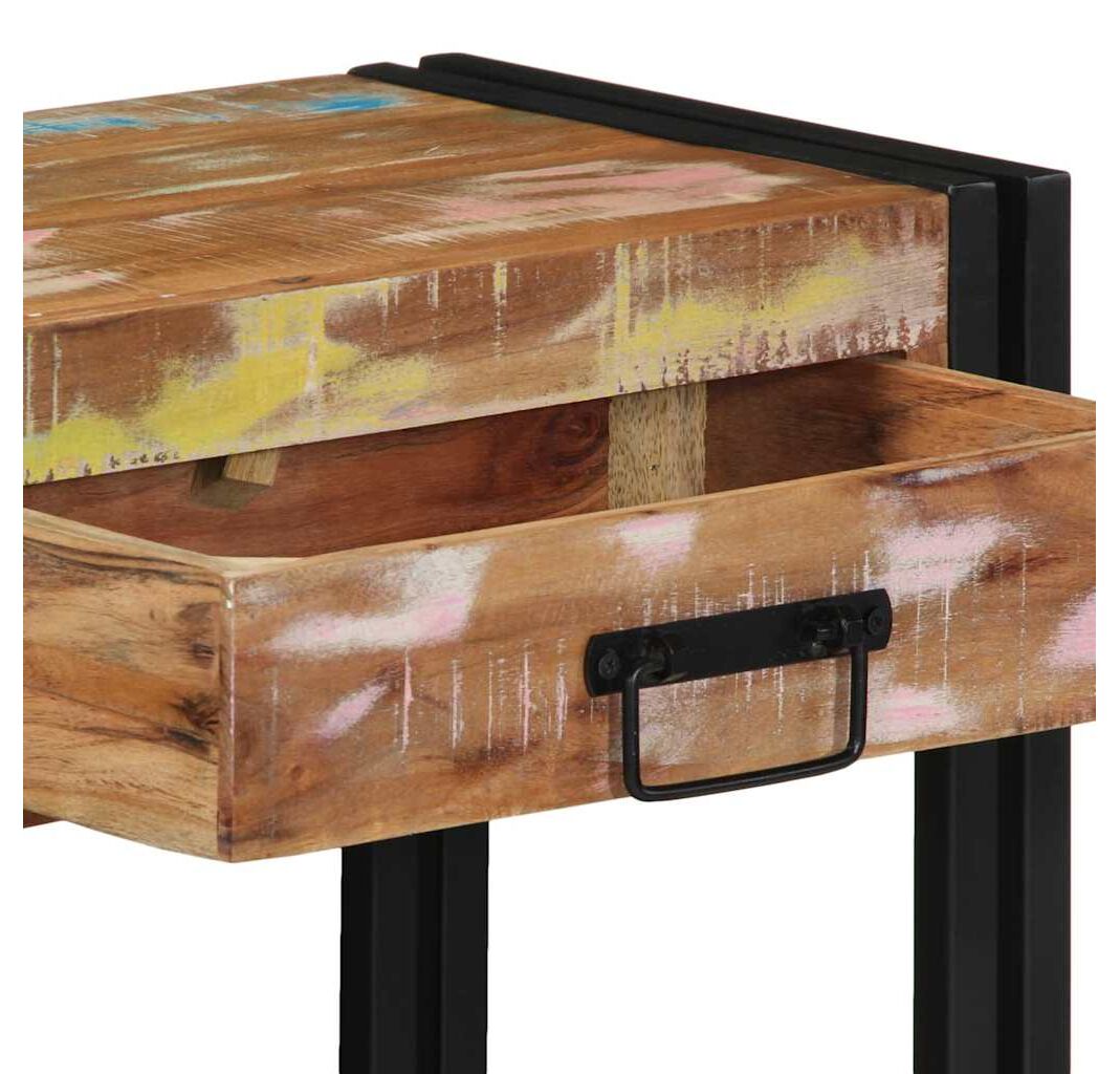 Masa asta consolă mixează vibe-ul industrial cu farmecul lemnului recuperat, făcând-o o alegere super pentru hallway sau living. Finisajul multicolor vibrant scoate în evidență fiecare fibră solidă, adăugând caracter și căldură.