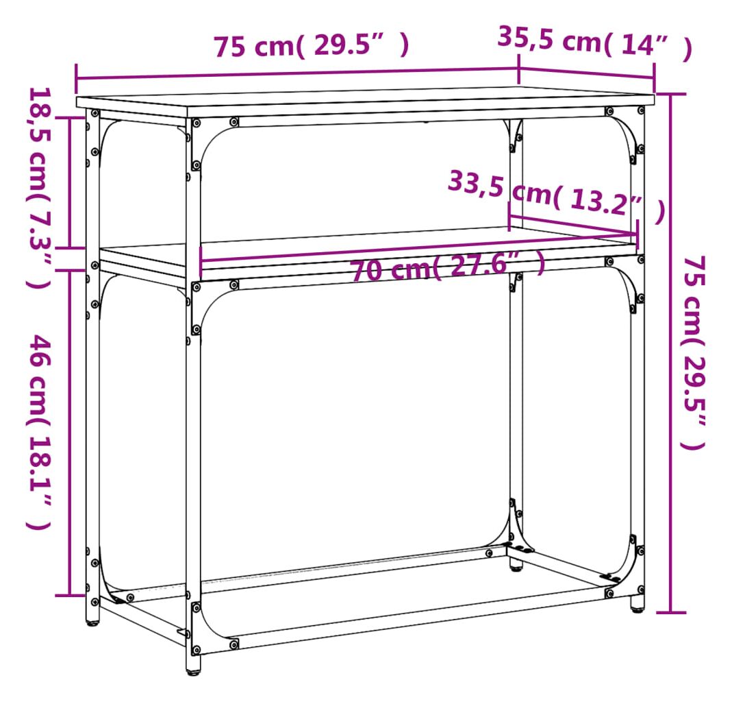 Cantitatea minima pentru "Măsuță consolă, gri sonoma, 75x35,5x75 cm, lemn prelucrat" este 1.