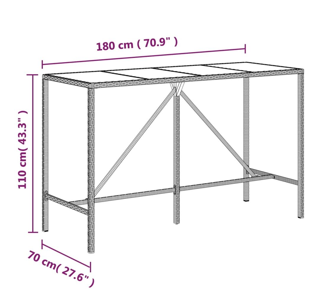 Această masă de bar la modă, cu blat din sticlă, care combină atât stilul, cât și funcționalitatea, este cu siguranță menită să fie piesa centrală a grădinii, terasei și oricărui alt spațiu de locuit.
