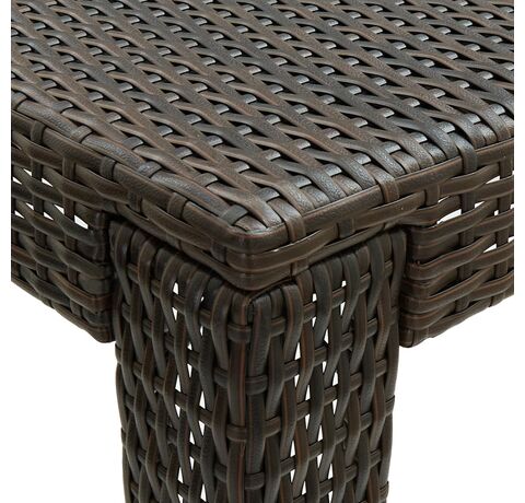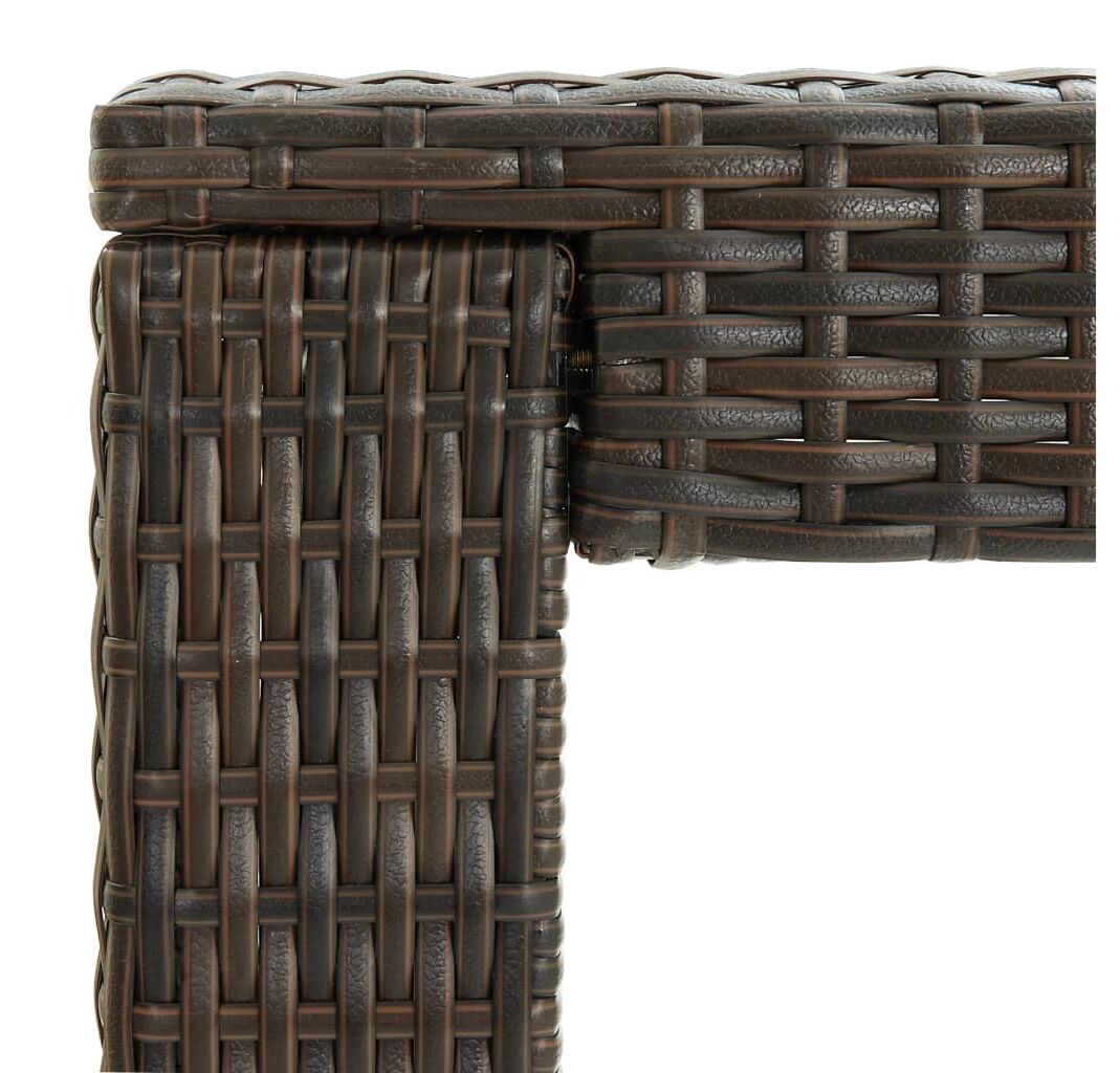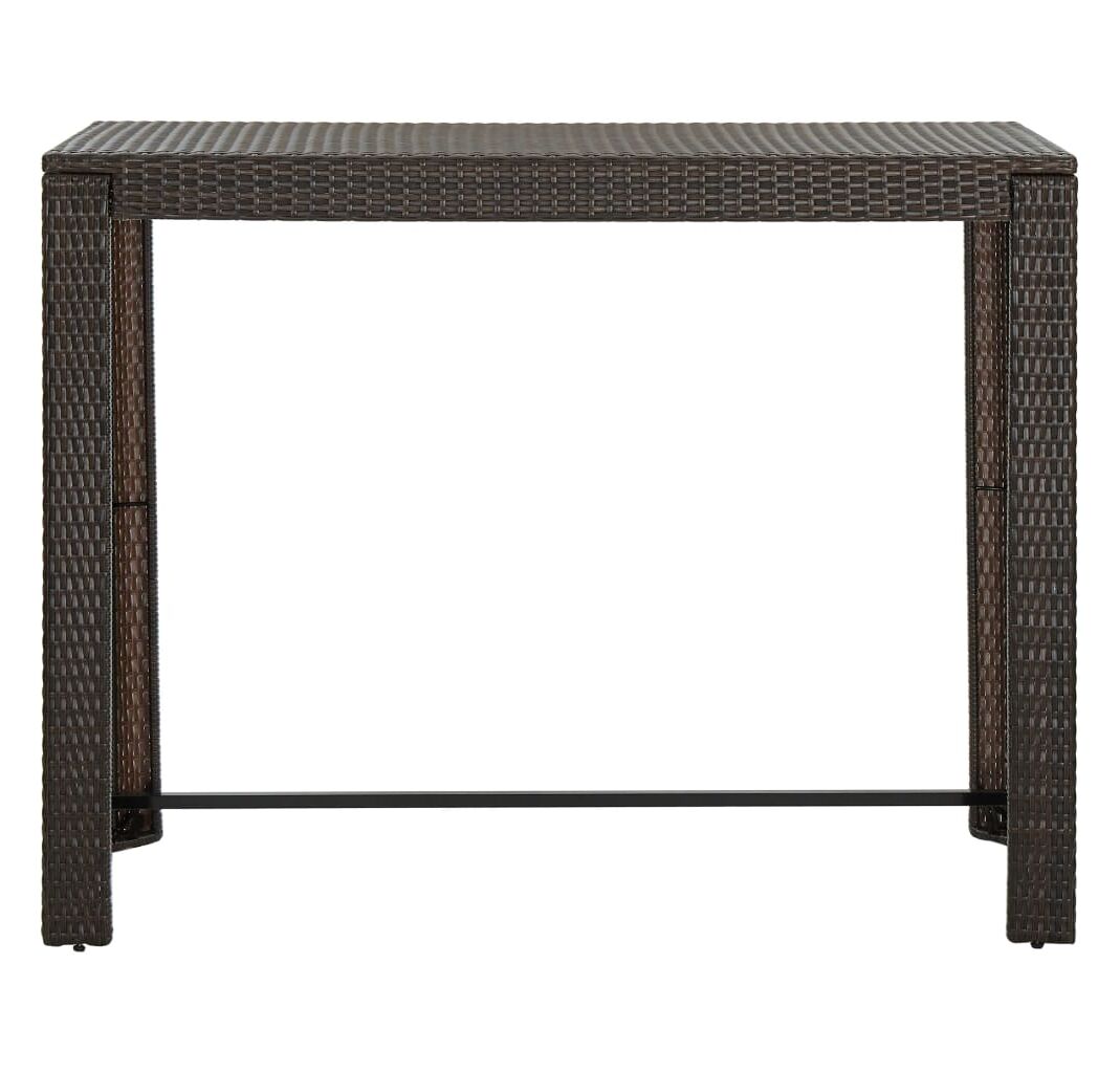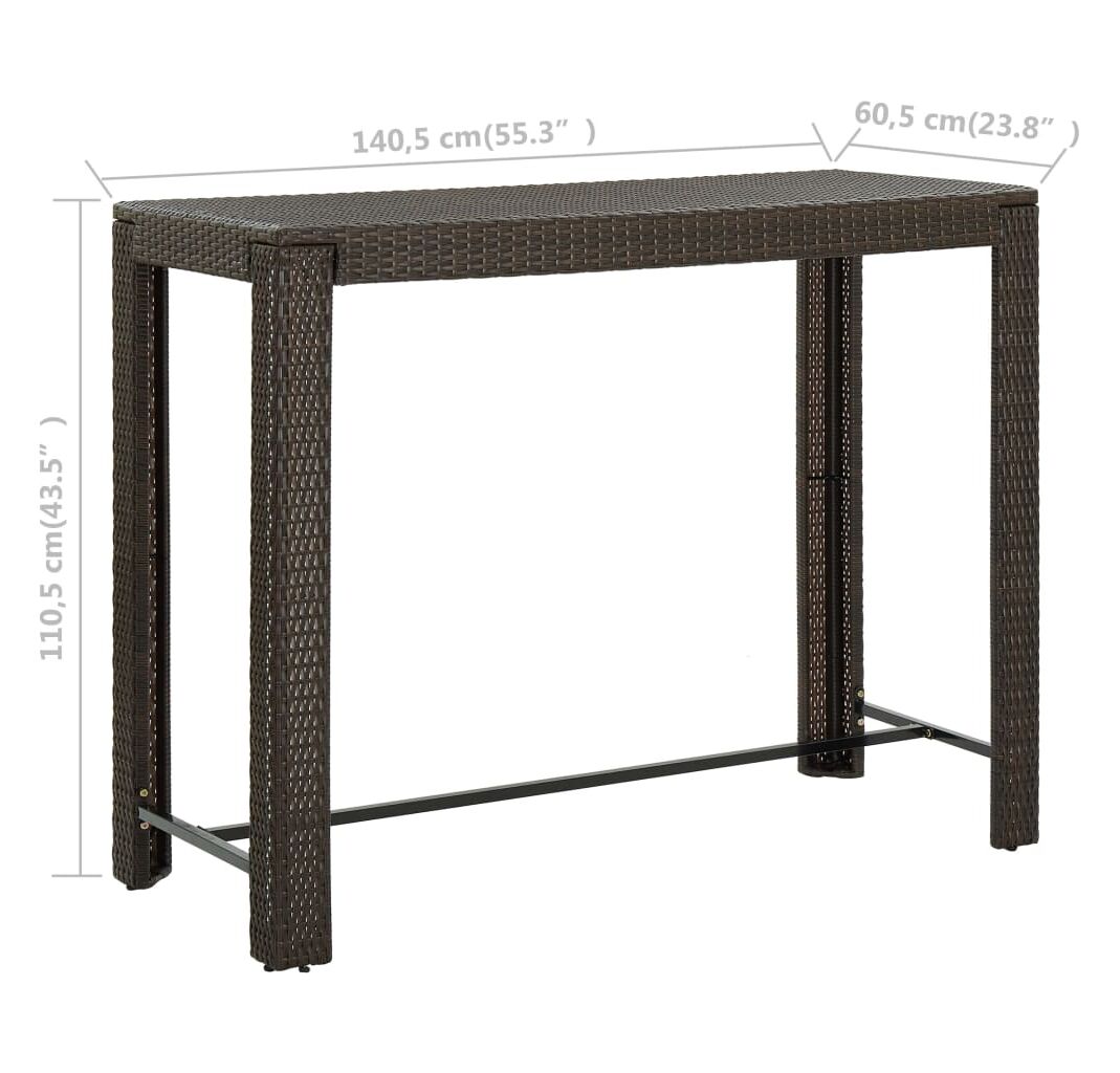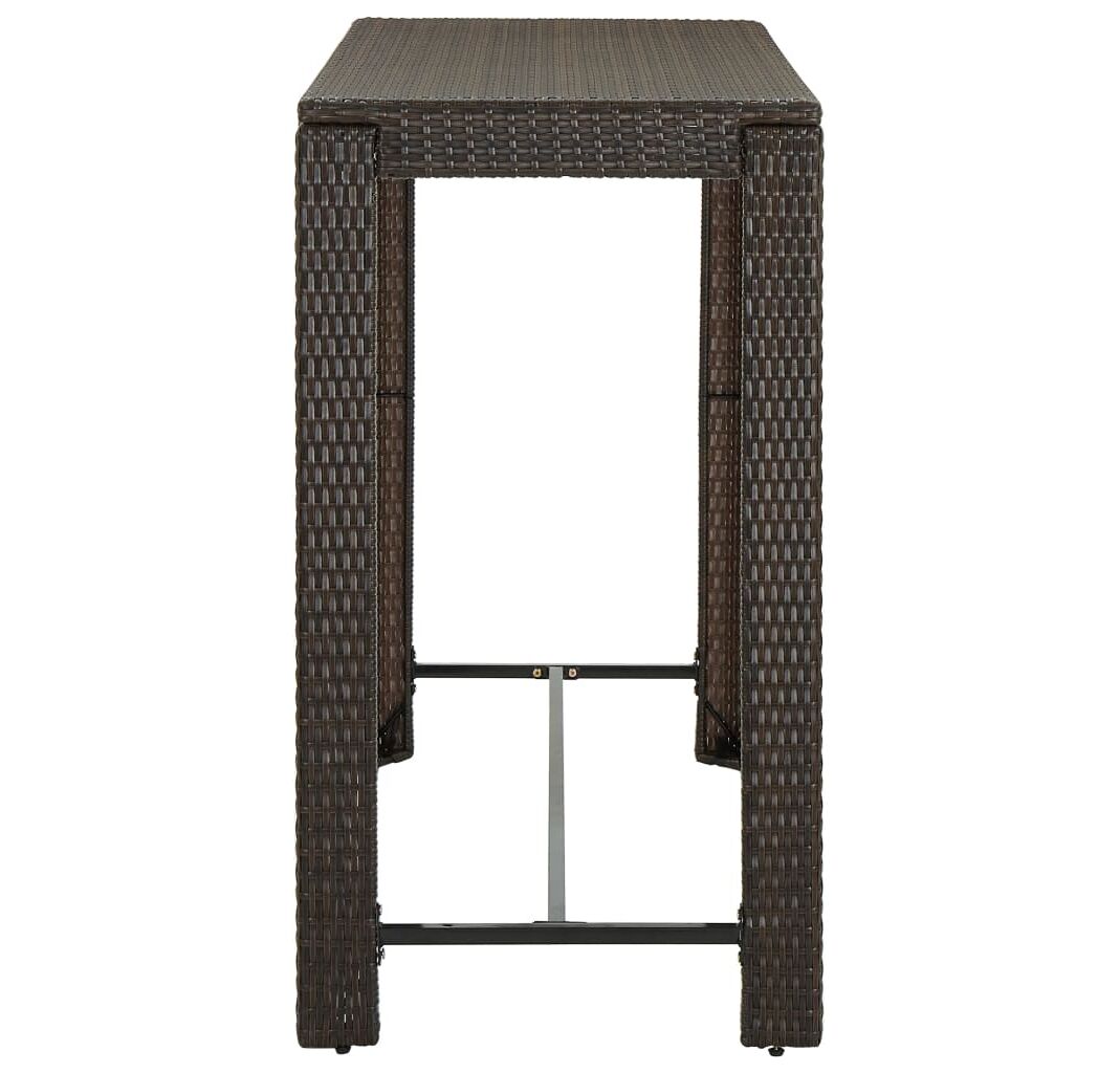 Această masă este realizată dintr-un cadru de oțel vopsit electrostatic, ceea ce o face stabilă, robustă și potrivită pentru utilizarea în interior sau în exterior. Construită din ratan PE durabil, masa este rezistentă la uzură și ideală pentru utilizarea zilnică în aer liber. Se curăță ușor cu o lavetă umedă. Blatul robust este ideal pentru plasarea de băuturi, alimente, vaze decorative și altele. Datorită construcției ușoare din ratan, masa de bar poate fi deplasată cu ușurință, pentru a se potrivi cu alte setări.