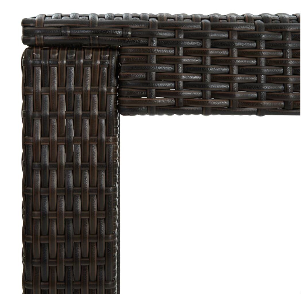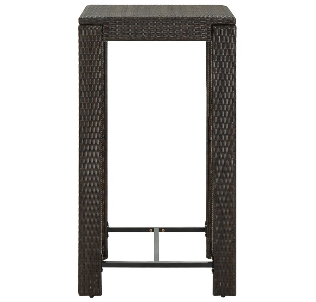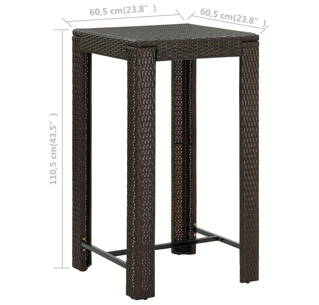 Această masă este realizată dintr-un cadru de oțel vopsit electrostatic, ceea ce o face stabilă, robustă și potrivită pentru utilizarea în interior sau în exterior. Construită din ratan PE durabil, masa este rezistentă la uzură și ideală pentru utilizarea zilnică în aer liber. Se curăță ușor cu o lavetă umedă. Blatul robust este ideal pentru plasarea de băuturi, alimente, vaze decorative și altele. Datorită construcției ușoare din ratan, masa de bar poate fi deplasată cu ușurință, pentru a se potrivi cu alte setări.