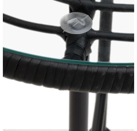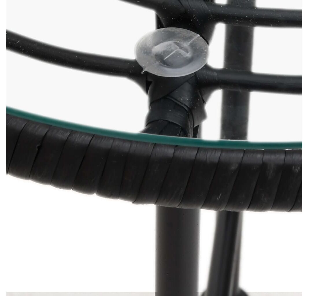 - Material: Oțel, sticlă securizată, polietilenă cu aspect de ratan