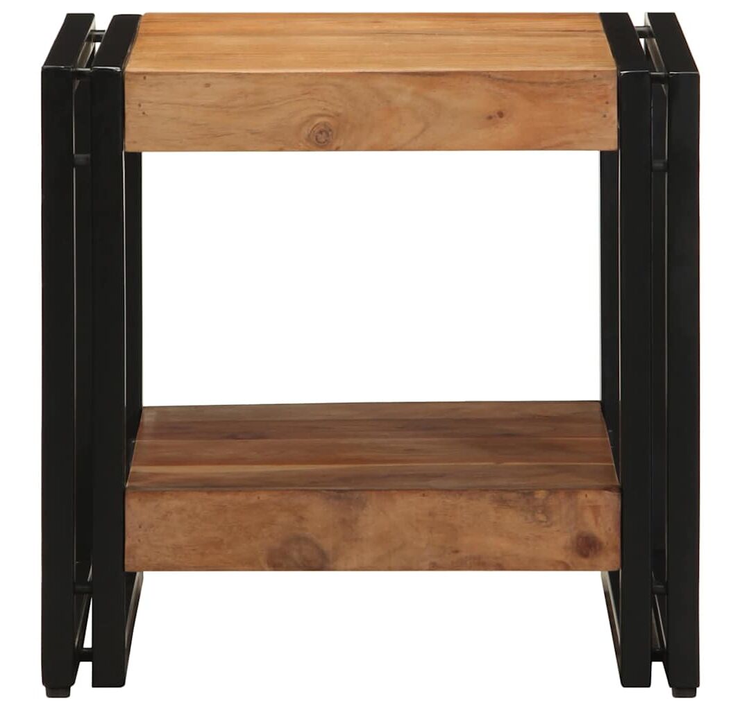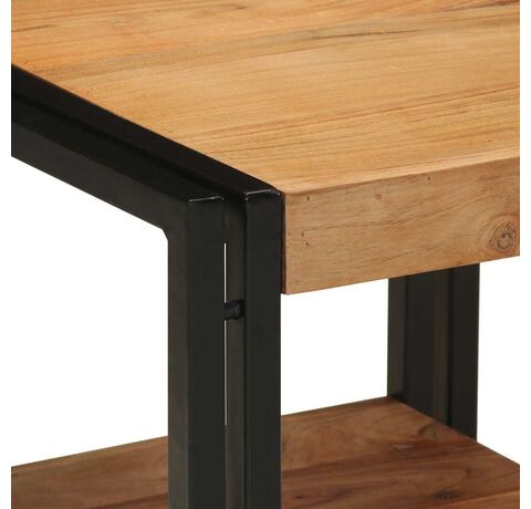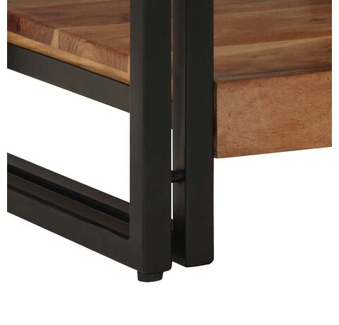 Această masă de cafea industrială e combinația perfectă între stil și funcționalitate, fiind o adiție tare în camera ta de zi sau dormitor. Fabricată din lemn masiv de acacia și un cadru solid din fier, are un aspect impresionant care îmbină farmecul rustic cu vibrații moderne. E perfectă pentru a susține băuturi și decorațiuni, oferind în același timp depozitare practică prin rafturile bine gândite.