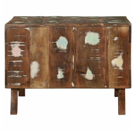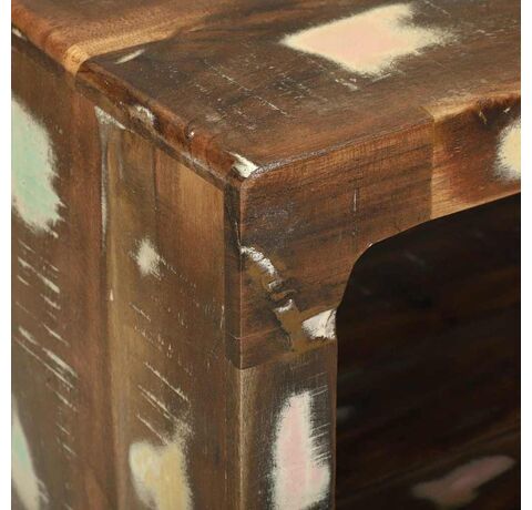 Masă de cafea asta, din lemn masiv recuperat, are un vibe rustic perfect și e super practică, se potrivește fain în orice lounge. Tonurile frumoase de maron și multicolor, plus finisajul ăsta uzat, fac din ea un loc super fain pentru cănile tale de cafea, cărți și obiecte decorative, adăugând la atmosfera locului tău.
