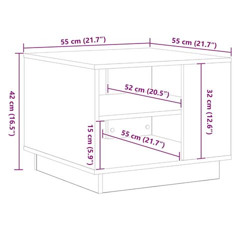 - Dimensiune compactă: La 55 x 55 x 49 cm, această masă de cafea mică e perfectă pentru apartamente sau camere de zi cozy unde spațiul e limitat, oferind funcționalitate fără a compromite stilul.
