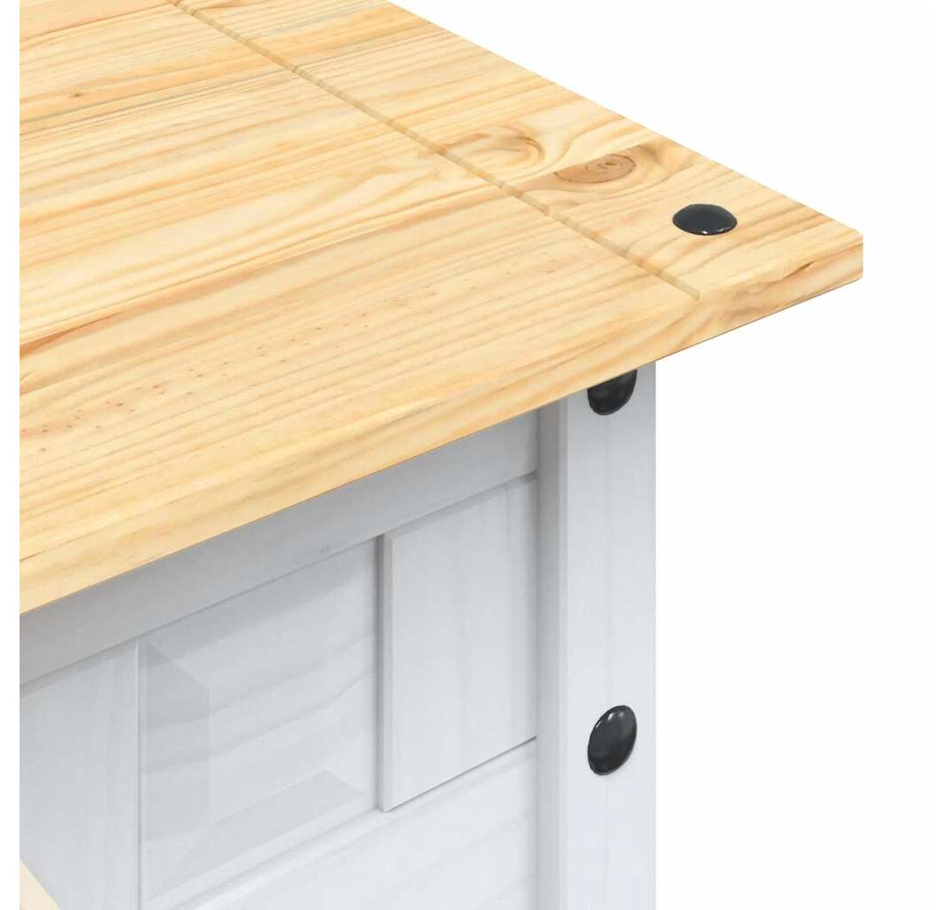 Fabricată din lemn de pin masiv, masa laterală este puternică și robustă. Blatul solid oferă o suprafață stabilă și sigură pe care puteți amplasa băuturile, un coș cu fructe, o vază sau alte obiecte decorative. Dispune de un sertar pentru depozitarea mărunțișurilor, ziarelor și a altor obiecte utile.