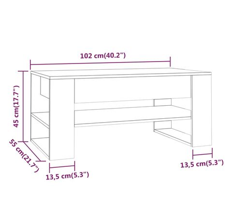 Măsuță de cafea, alb, 102x55x45 cm, lemn prelucrat