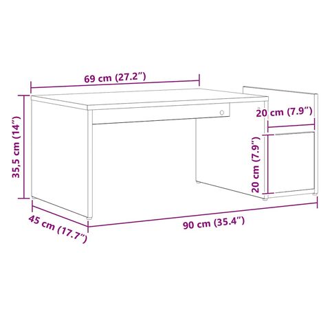 - Dimensiuni: Cu dimensiunile de 90 cm lungime, 45 cm lățime și 35 cm înălțime, masa asta stă perfect în fața canapelei sau în zona de șezut, asigurându-ți un spațiu plăcut pentru relaxare.
