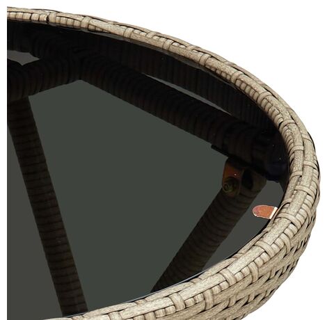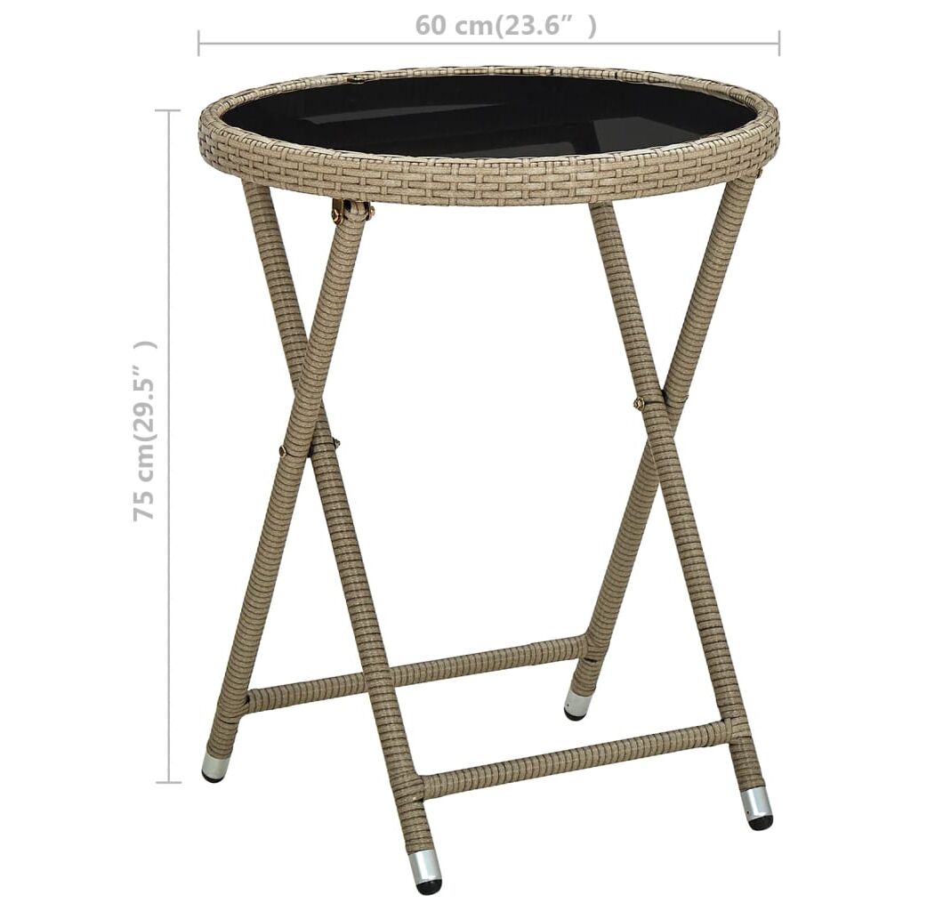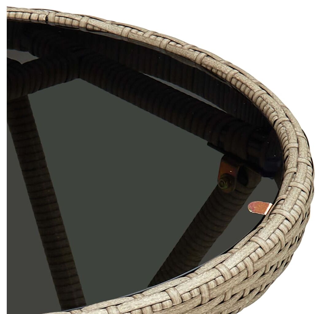 Această masă de exterior, realizată din ratan PE rezistent la intemperii, este ușor de curățat, rezistentă și adecvată pentru utilizarea zilnică. Cadru din oțel vopsit electrostatic o face foarte robustă și durabilă. Blatul robust este fabricat din sticlă călită. Este ușor de curățat cu o cârpă umedă și ideală pentru a păstra băuturile și mâncarea la îndemână. Datorită designului pliant, măsuța de cafea poate fi pliată cu ușurință pentru a economisi spațiu atunci când nu este utilizată.