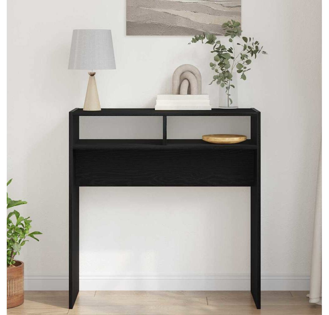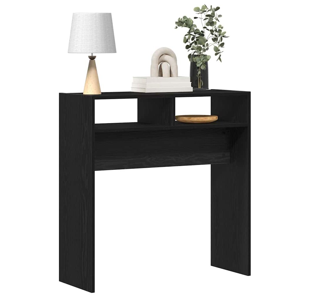 Această masă de consolă e o adăugare grozavă pentru orice foaier sau cameră de zi, cu un finisaj neted din furnir de stejar negru ce combină funcționalitatea cu stilul. Forma dreptunghiulară și designul compact o fac perfectă pentru spații mici, servind atât ca un loc elegant de expunere, cât și ca o soluție practică pentru lucrurile tale esențiale.