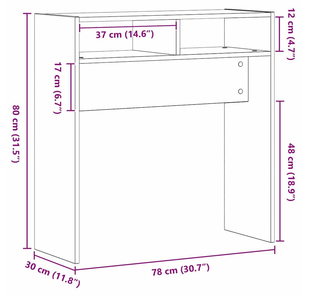 - Design compact: La 78 cm lungime și 30 cm lățime, e perfectă pentru holuri înguste sau spații de locuit compacte, oferind funcționalitate fără a sacrifica stilul.
