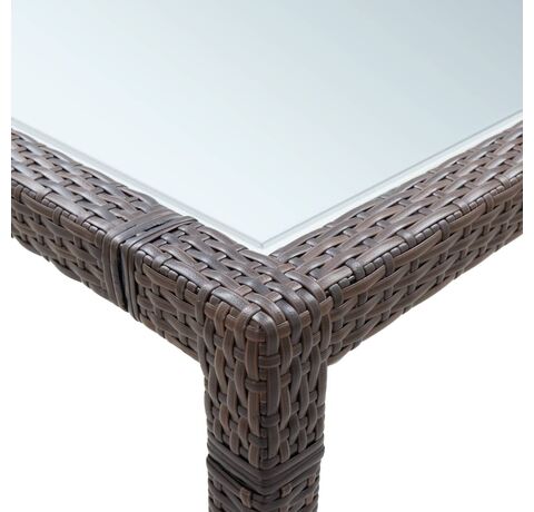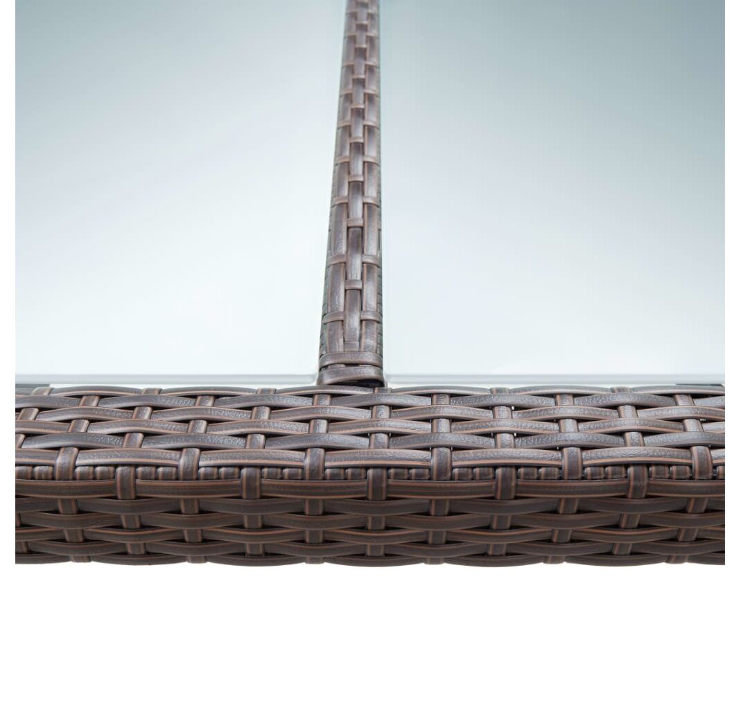Cadrul din oțel și blatul din sticlă fac masa rezistentă și stabilă. Construcția este, de asemenea, ușoară, permițând deplasarea mesei fără probleme. Datorită poliratanului rezistent la intemperii, această masă este, de asemenea, ușor de curățat.