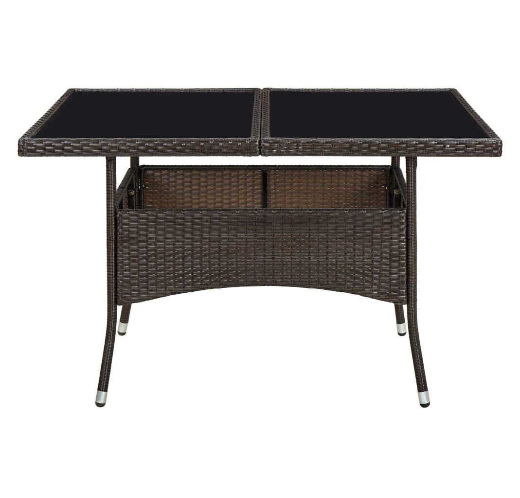 Vă puteți bucura de o cină sub stele sau de un prânz însorit pe terasă cu această masă de grădină. Poate găzdui până la 4 persoane. Având un cadru din oțel vopsit electrostatic, învelit cu ratan PE rezistent la intemperii și raze UV, această masă asigură ani de utilizare în exterior. Fabricat din sticlă securizată consolidată cu un suport rezistent, blatul este ușor de întreținut și de curățat. În plus, datorită construcției ușoare din ratan, această masă este simplu de mutat și de înlocuit.