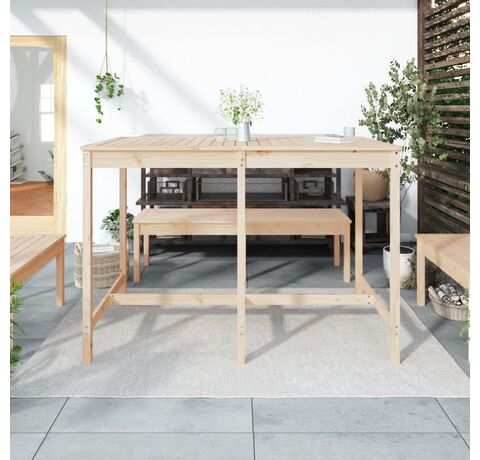 - Lemn masiv de pin: Masa de exterior este realizată din lemn masiv de pin. Lemnul masiv de pin este un material natural frumos. Lemnul de pin are o granulație plană, iar nodurile conferă materialului unicitate și un aspect rustic.
