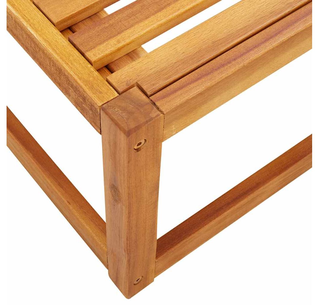 - Cadru robust și stabil: Lemnul masiv de acacia este cunoscut pentru rezistența și durabilitatea sa. Culorile sale diverse și modelele granulației unice îi conferă un aspect atractiv. Cu o bună stabilitate și rezistență la intemperii, este ideal pentru realizarea de mobilier, pentru interior și exterior.