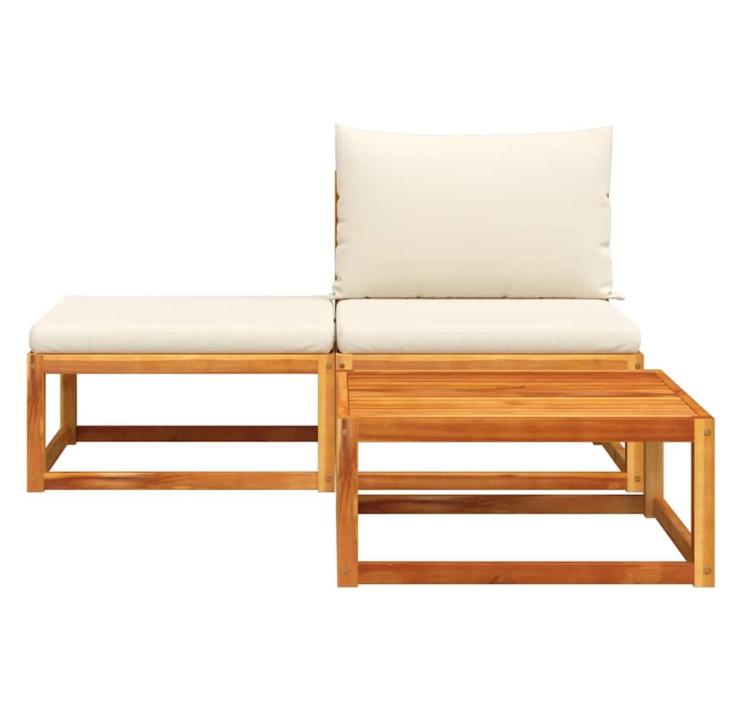 Set canapele de grădină 3 piese cu perne din lemn de salcâm și ratan