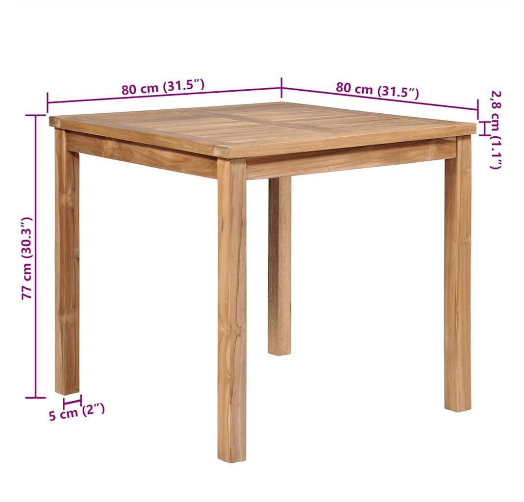 - Dimensiuni picior masă: 5 x 5 cm (l x ad.)