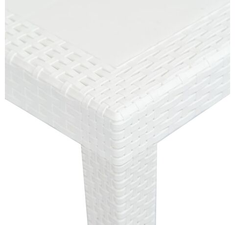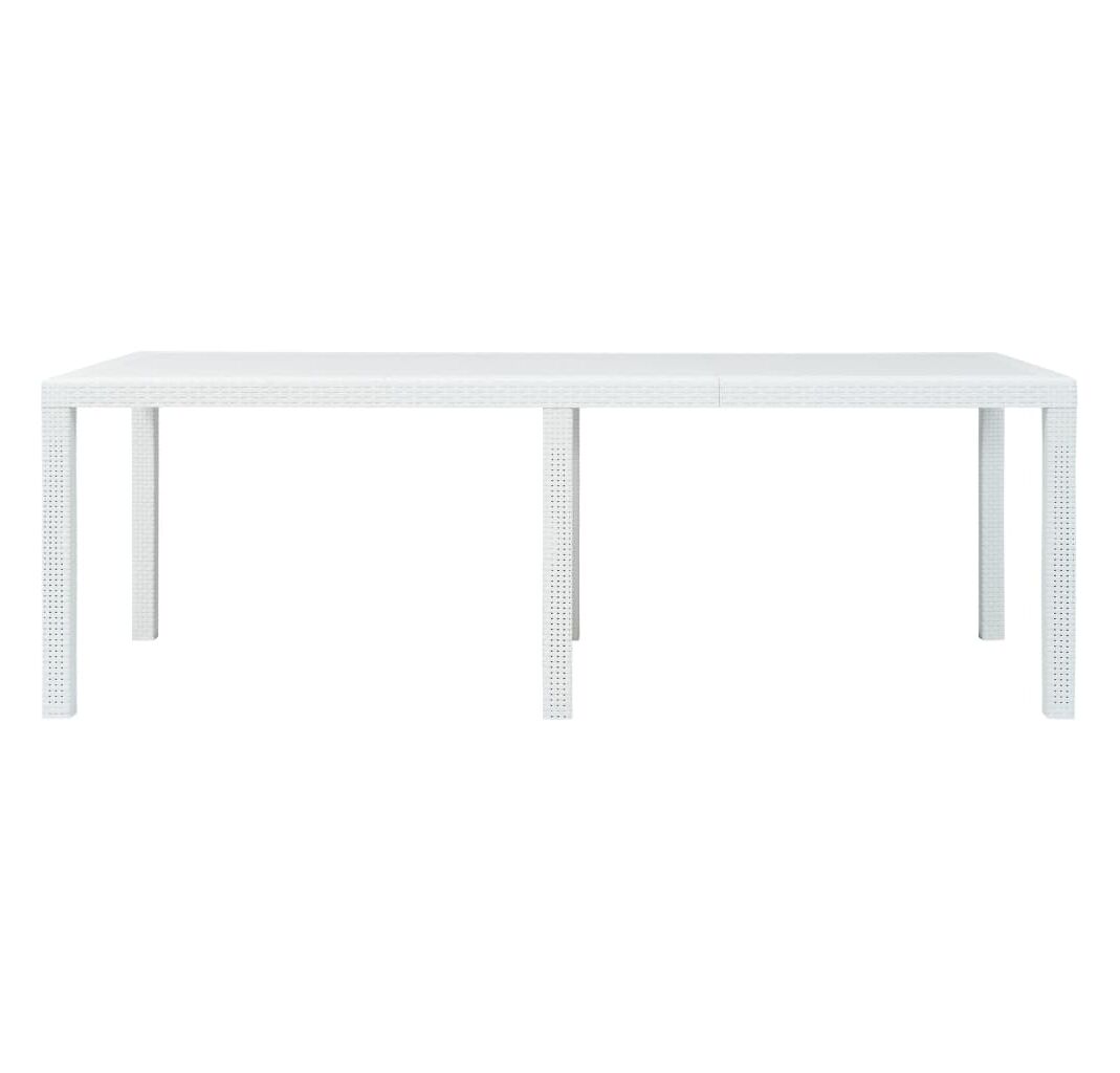 Cantitatea minima pentru "Masă de grădină, albă, 220x90x72 cm, plastic, aspect ratan" este 1.