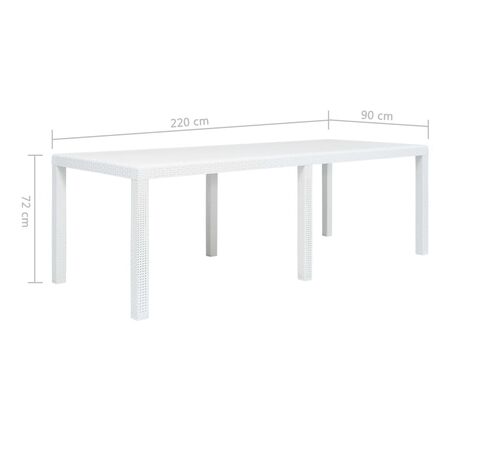 Masă de grădină, albă, 220x90x72 cm, plastic, aspect ratan