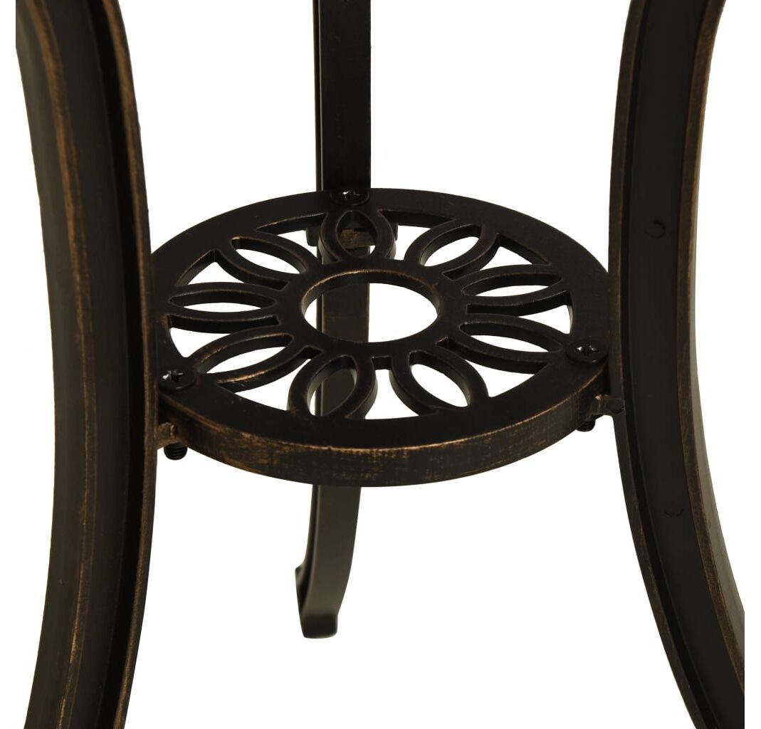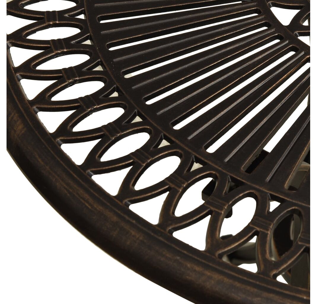 Această masă de ceai este fabricată din aluminiu turnat, făcându-o stabilă, robustă și ideală pentru utilizarea în spațiul de exterior. Masa are un design decupat unic și este potrivită pentru plasarea de băuturi, alimente și alte elemente esențiale. Cele patru picioare separate vă oferă o experiență de utilizare fiabilă, având în vedere stabilitatea mesei. În plus, această masă de terasă are o gaură pentru umbrelă, care poate găzdui perfect umbrela, pentru a vă proteja de soare sau ploaie.