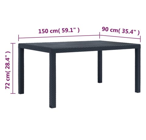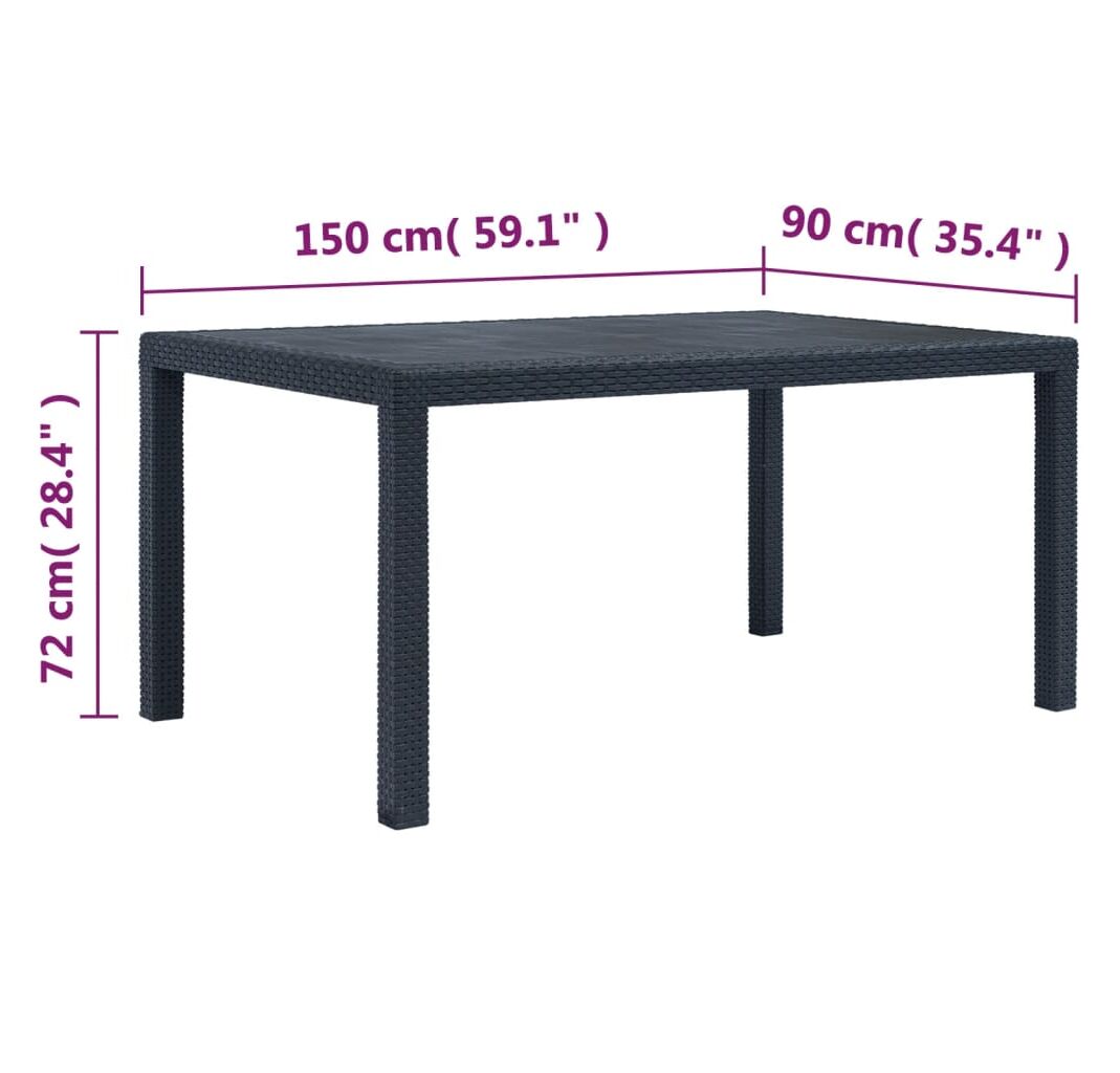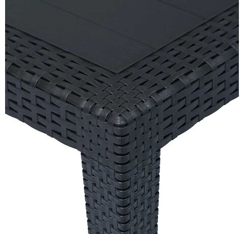 Această masă de bucătărie cu aspect de ratan este fabricată din plastic solid, fiind durabilă și puternică, precum și rezistentă la intemperii și ușor de curățat. De asemenea, designul cu aspect de ratan adaugă un farmec natural spațiului de exterior. Masa de grădină are o greutate redusă, fiind ușor de transportat.