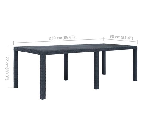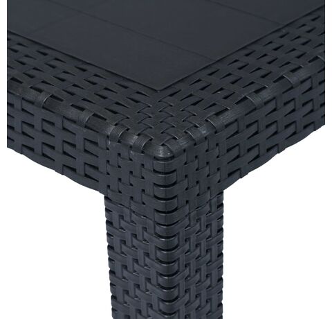 Această masă de bucătărie cu aspect de ratan este fabricată din plastic solid, fiind durabilă și puternică, precum și rezistentă la intemperii și ușor de curățat. De asemenea, designul cu aspect de ratan adaugă un farmec natural spațiului de exterior. Masa de grădină are o greutate redusă, fiind ușor de transportat.