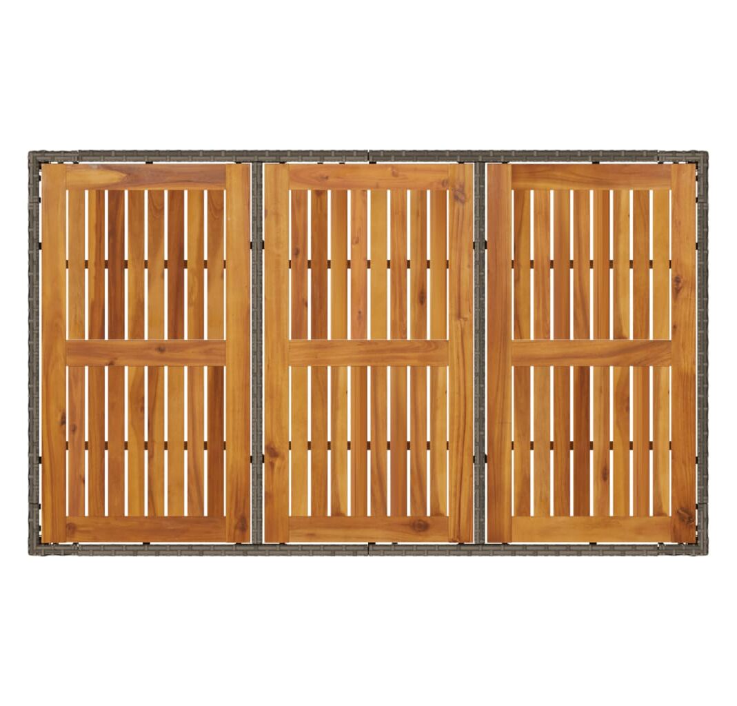 - Material: Ratan PE, oțel vopsit electrostatic, lemn masiv de acacia cu finisaj natural de ulei