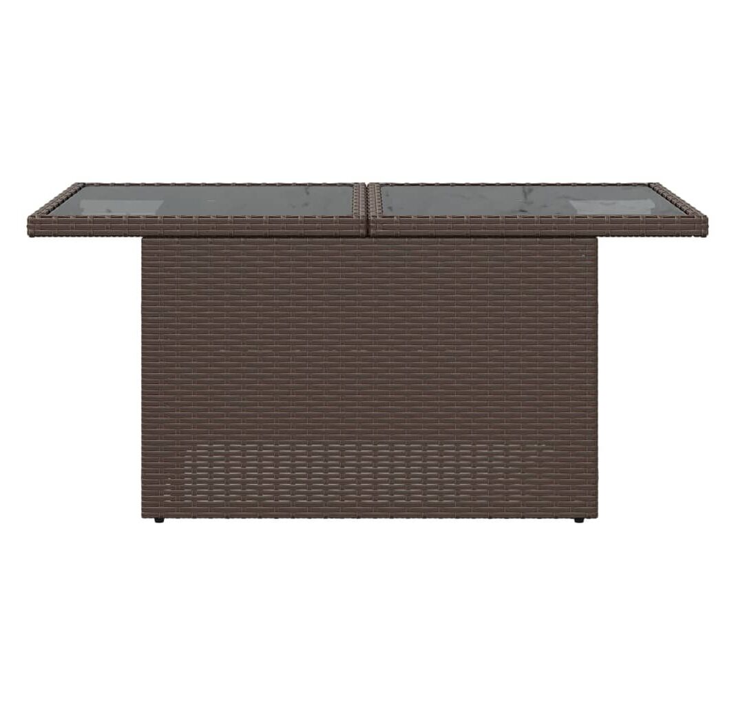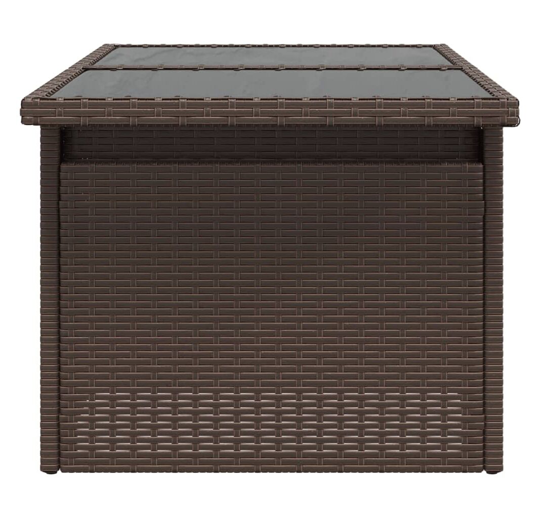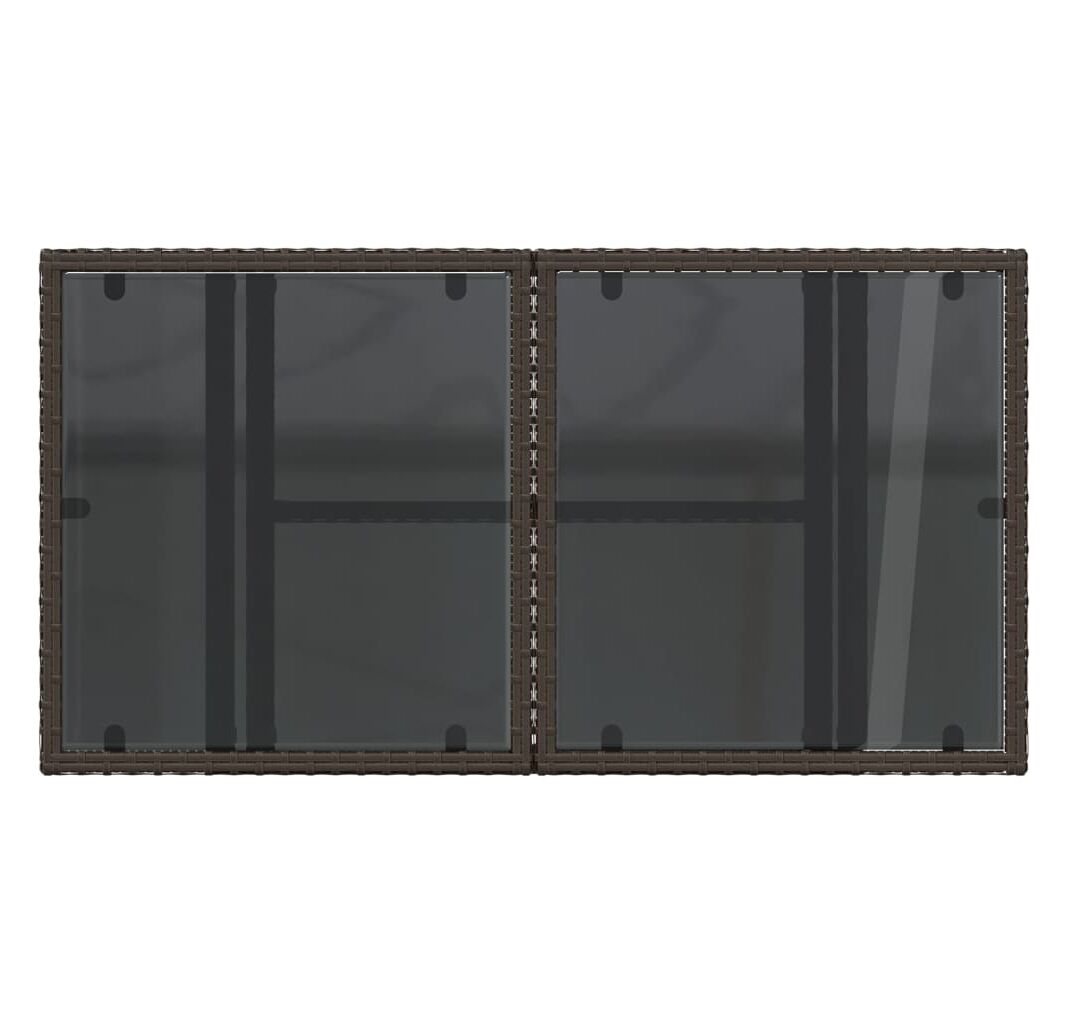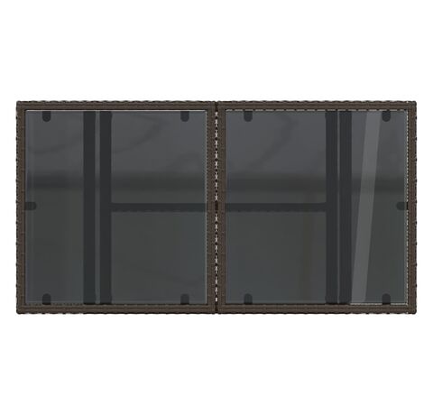 Masă de grădină, blat din sticlă, maro, 100x55x73 cm, poliratan