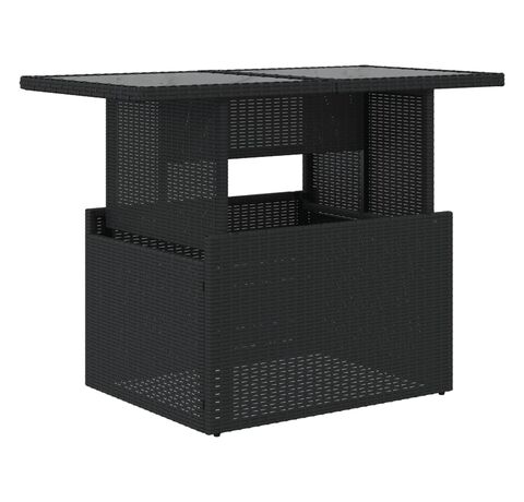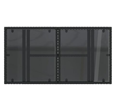 Masă grădină cu blat din sticlă, negru, 100x55x73 cm, poliratan