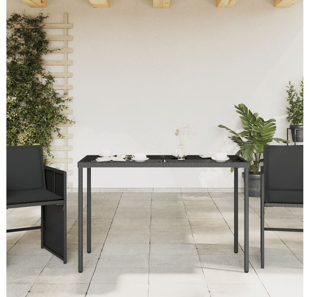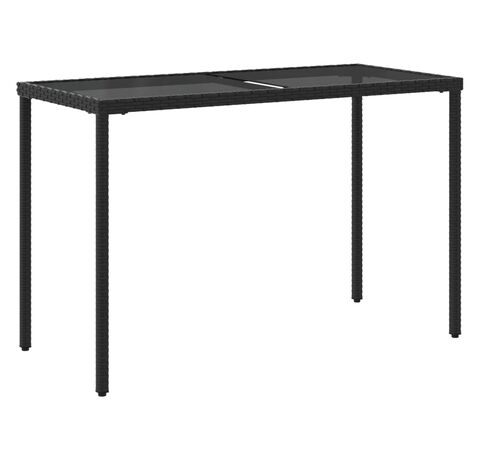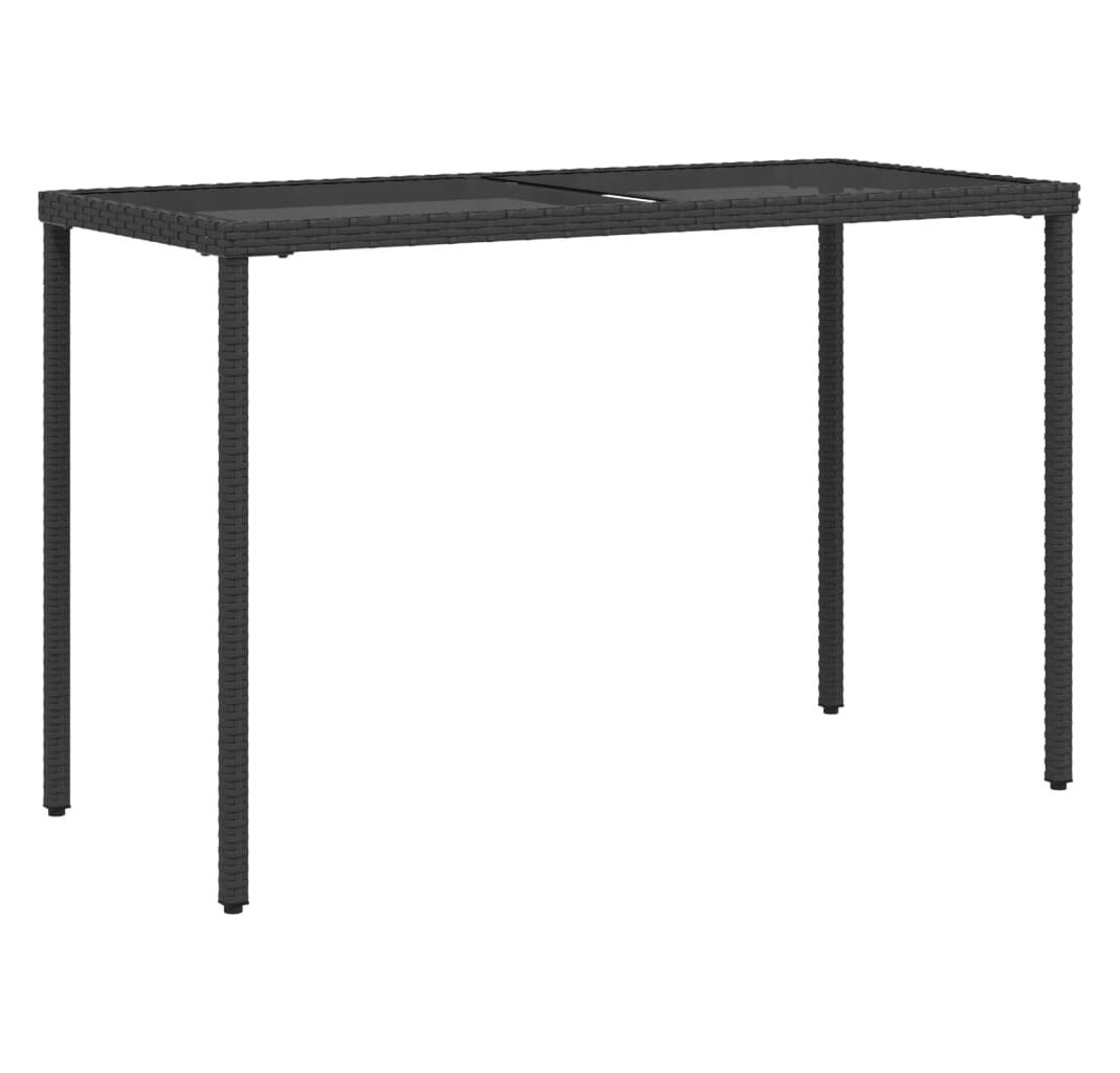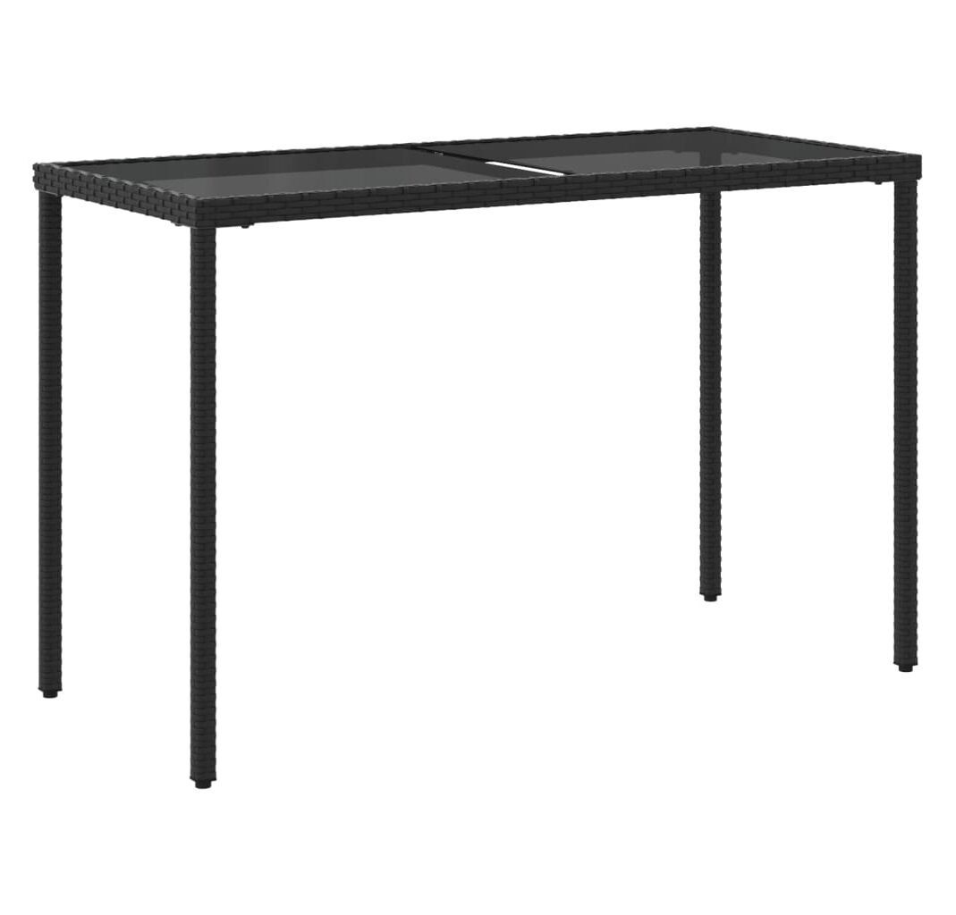 Masă grădină cu blat din sticlă, negru, 115x54x74 cm, poliratan
