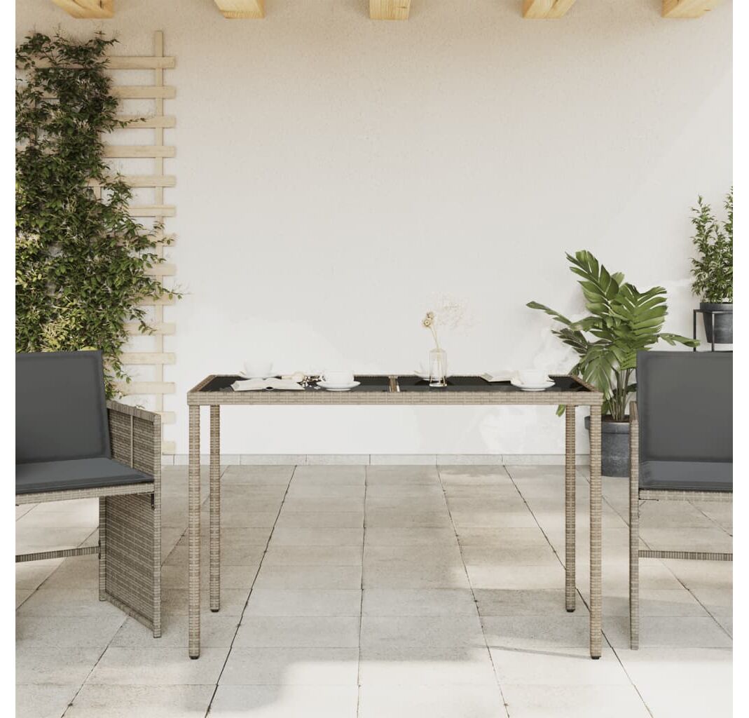 Masă de grădină cu blat din sticlă gri, 115x54x74cm, poliratan