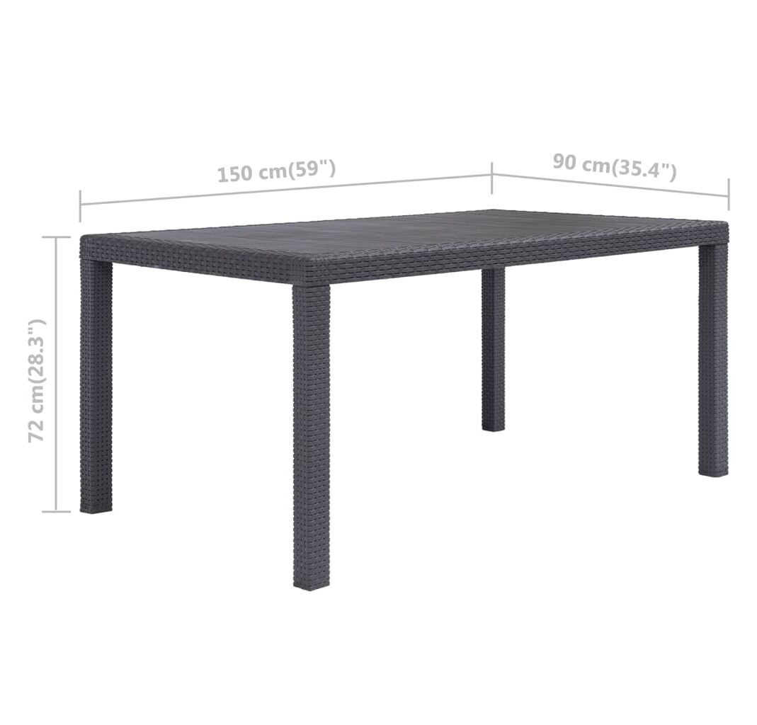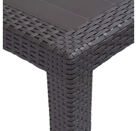 Această masă de bucătărie cu aspect de ratan este fabricată din plastic solid, fiind durabilă și puternică, precum și rezistentă la intemperii și ușor de curățat. De asemenea, designul cu aspect de ratan adaugă un farmec natural spațiului de exterior. Masa de grădină are o greutate redusă, fiind ușor de transportat.