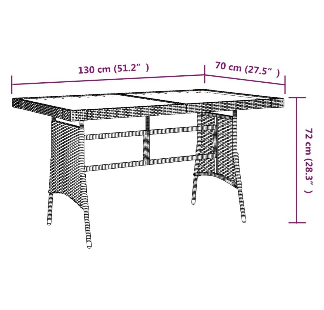 Cantitatea minima pentru "Masă grădină, negru, 130x70x72 cm, poliratan/lemn masiv acacia" este 1.