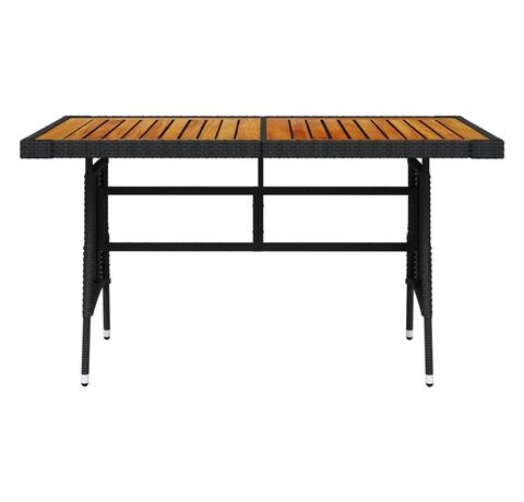 Masă grădină, negru, 130x70x72 cm, poliratan/lemn masiv acacia