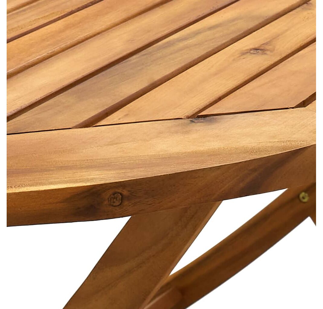 - Lemn masiv de acacia: Masa de grădină este realizată din lemn masiv de acacia. Lemnul masiv de acacia este un material natural frumos. Lemnul de acacia are granulație frumoasă din lemn ceea ce face fiecare piesă de mobilier distinctă și ușor diferită de celelalte.