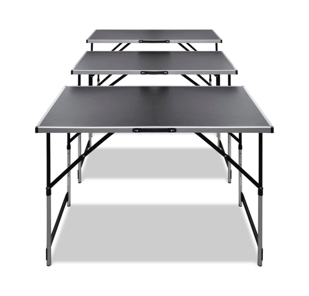 Blatul negru din MDF, ușor de curățat, este susținut de picioare din fier și aluminiu ușor și solid, oferind mesei durabilitate și stabilitate. Cu o capacitate maximă de încărcare de 30 kg, cele 3 mese de lipire sunt reglabile în înălțime până la 73/80/87/94 cm.