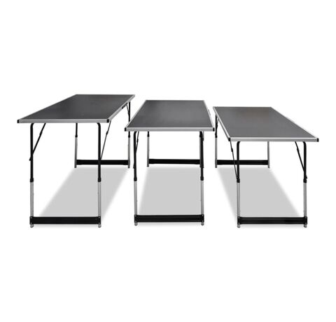 Aceste 3 mese ar putea fi fixate împreună prin cârligele atașate. Toate cele 3 mese sunt pliabile pentru portabilitate și pot fi depozitate cu ușurință, atunci când nu sunt folosite.