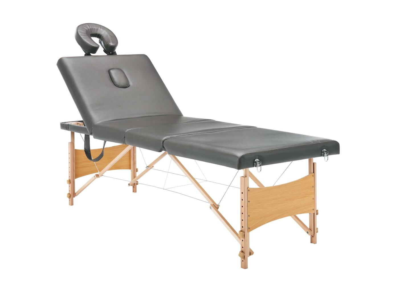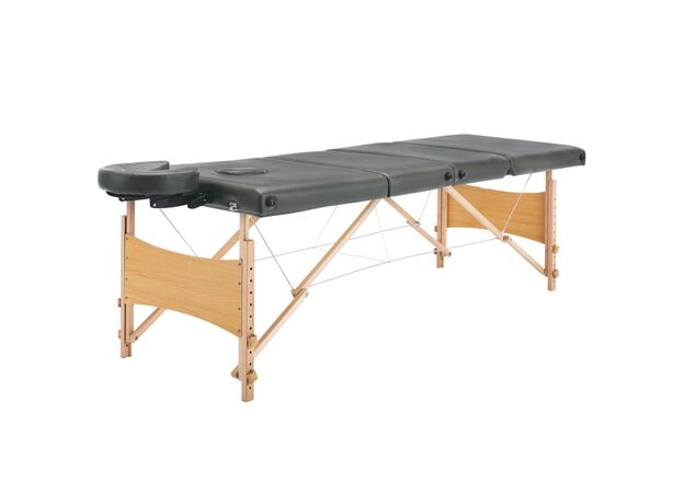 Masă de masaj cu 4 zone, cadru din lemn, antracit, 186 x 68 cm