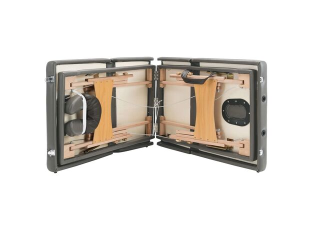 Masa de masaj pliabilă cu 4 zone și un cadru din lemn este potrivită atât pentru amatori, cât și pentru profesioniști.