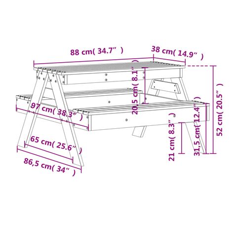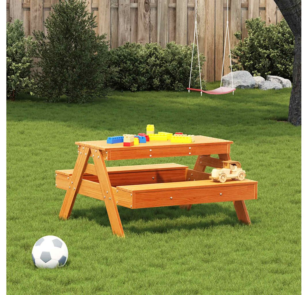 - Durabilă și robustă: Masa de picnic pentru grădină este realizată din lemn masiv de pin și are o structură robustă și stabilă, astfel vă poate însoți copilul pentru o lungă perioadă de timp.