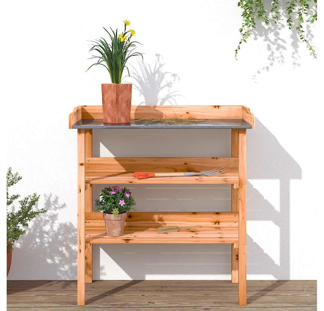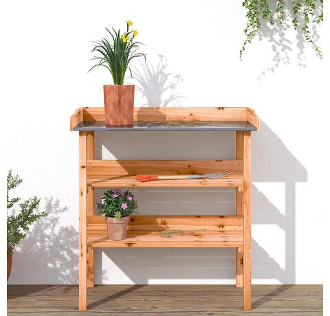 - Durabilă și robustă: Această masă pentru ghivece de grădină este realizată din lemn masiv de brad, ceea ce o face durabilă și de lungă durată.