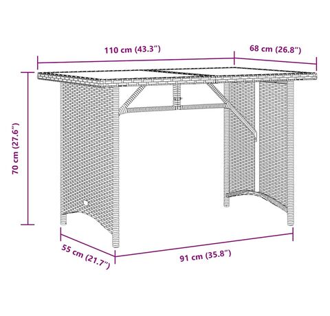 - Blat de masă din sticlă: Blatul mesei de exterior este fabricat din sticlă securizată puternică și durabilă, fiind ușor de curățat cu o cârpă umedă și adăugând o notă de eleganță spațiului dvs. de exterior.