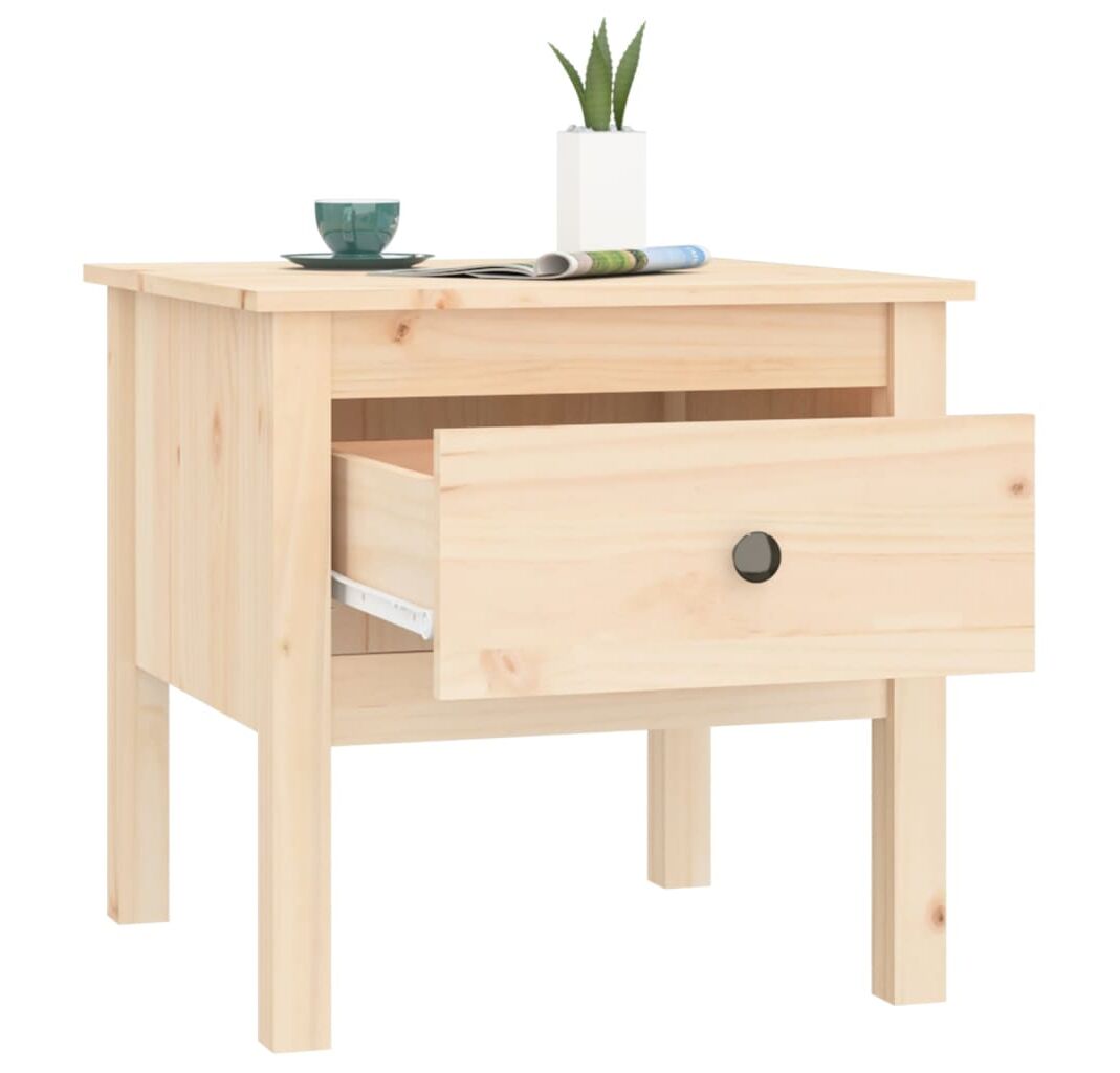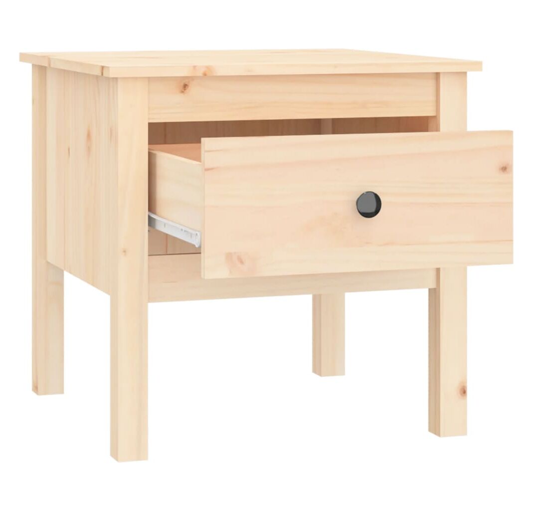 - Lemn masiv de pin: Lemnul masiv de pin este un material natural frumos. Lemnul de pin are o granulație simplă, iar nodurile dau materialului originalitate și un aspect rustic. Masa de capăt este realizată din lemn masiv de pin, ceea ce o face stabilă și durabilă.