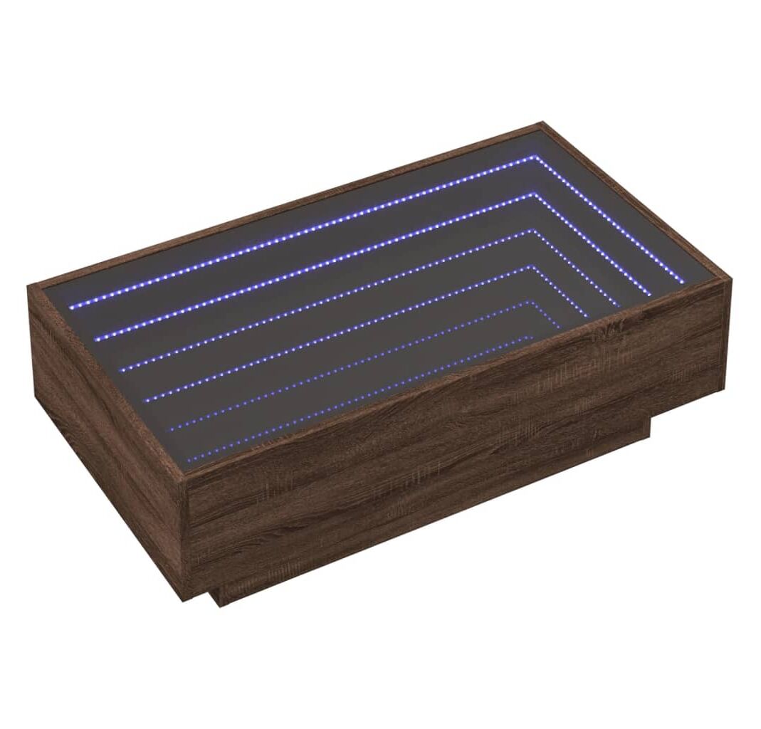 Măsuța laterală unică, cu oglindă cu LED infinity, este potrivită pentru diferite locuri. Este o masă necesară în casa dvs.