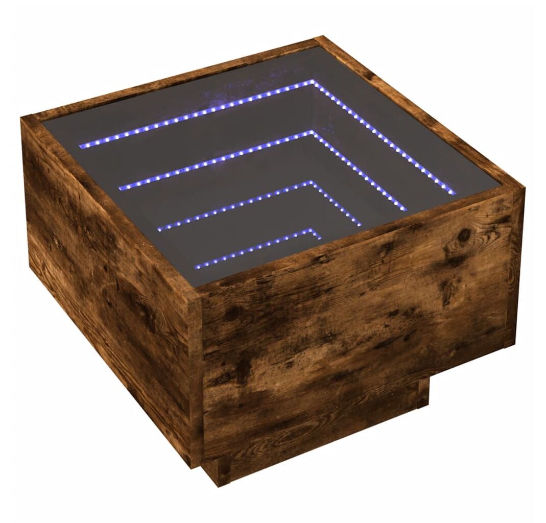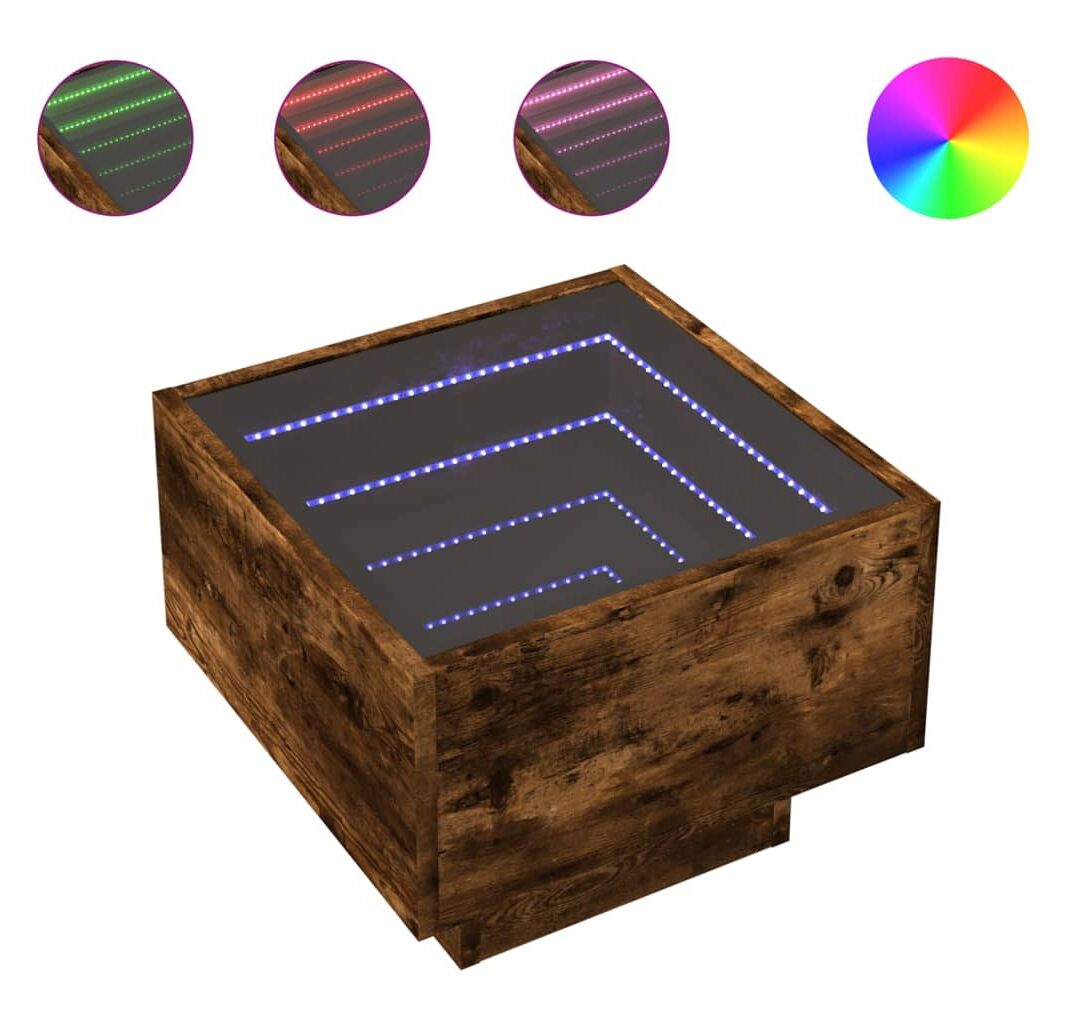 Măsuța laterală unică, cu oglindă cu LED infinity, este potrivită pentru diferite locuri. Este o masă necesară în casa dvs.